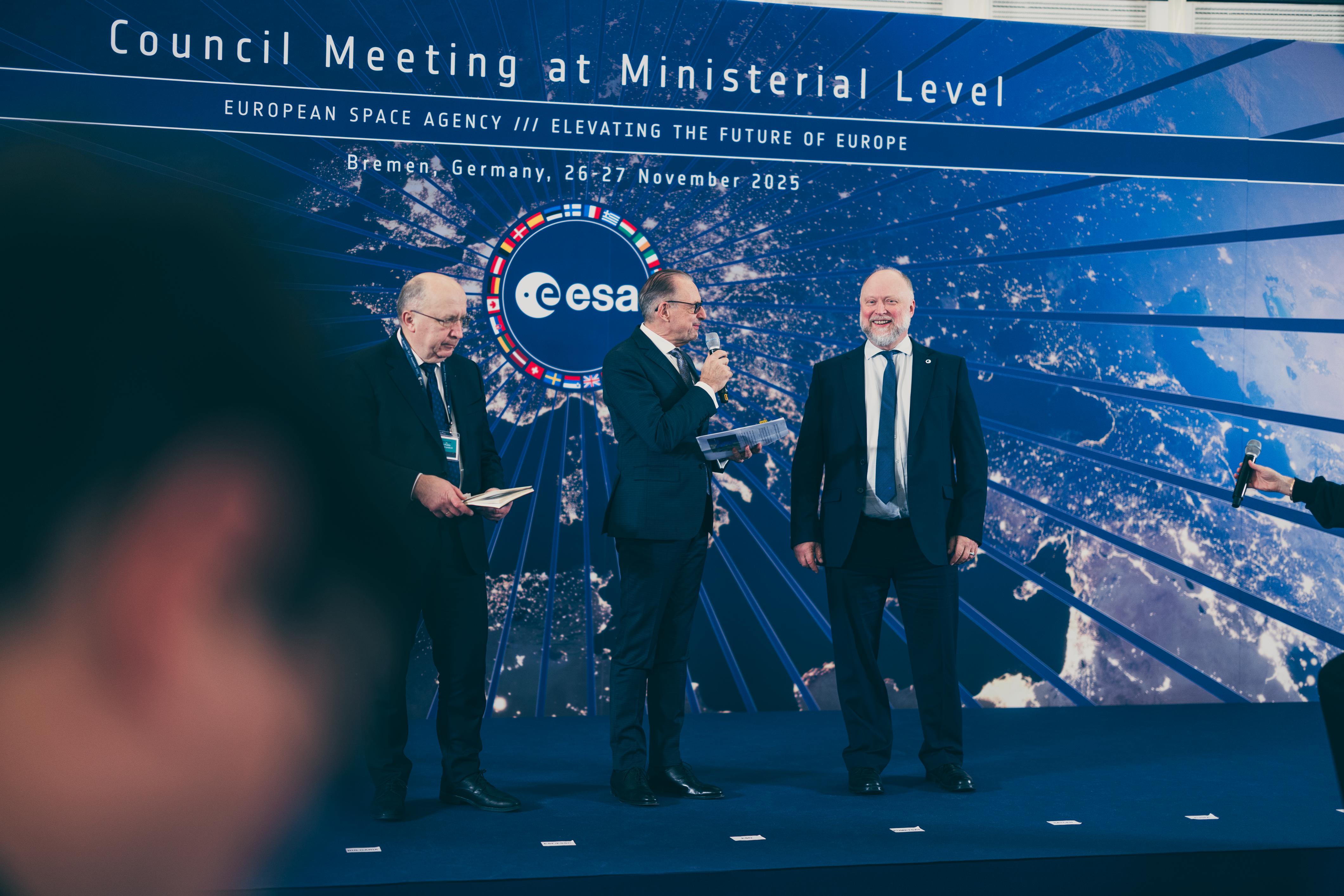 The Opening Session at the 2025 Ministerial Council in Bremen, Germany on 26 November 2025. Dorothee Bär, Federal Minister of Research, Technology and Space, Germany, opened the meeting. Adolfo Urso, Minister of Business and Made in Italy was elected Chair of CM25, the ESA Council at Ministerial level.