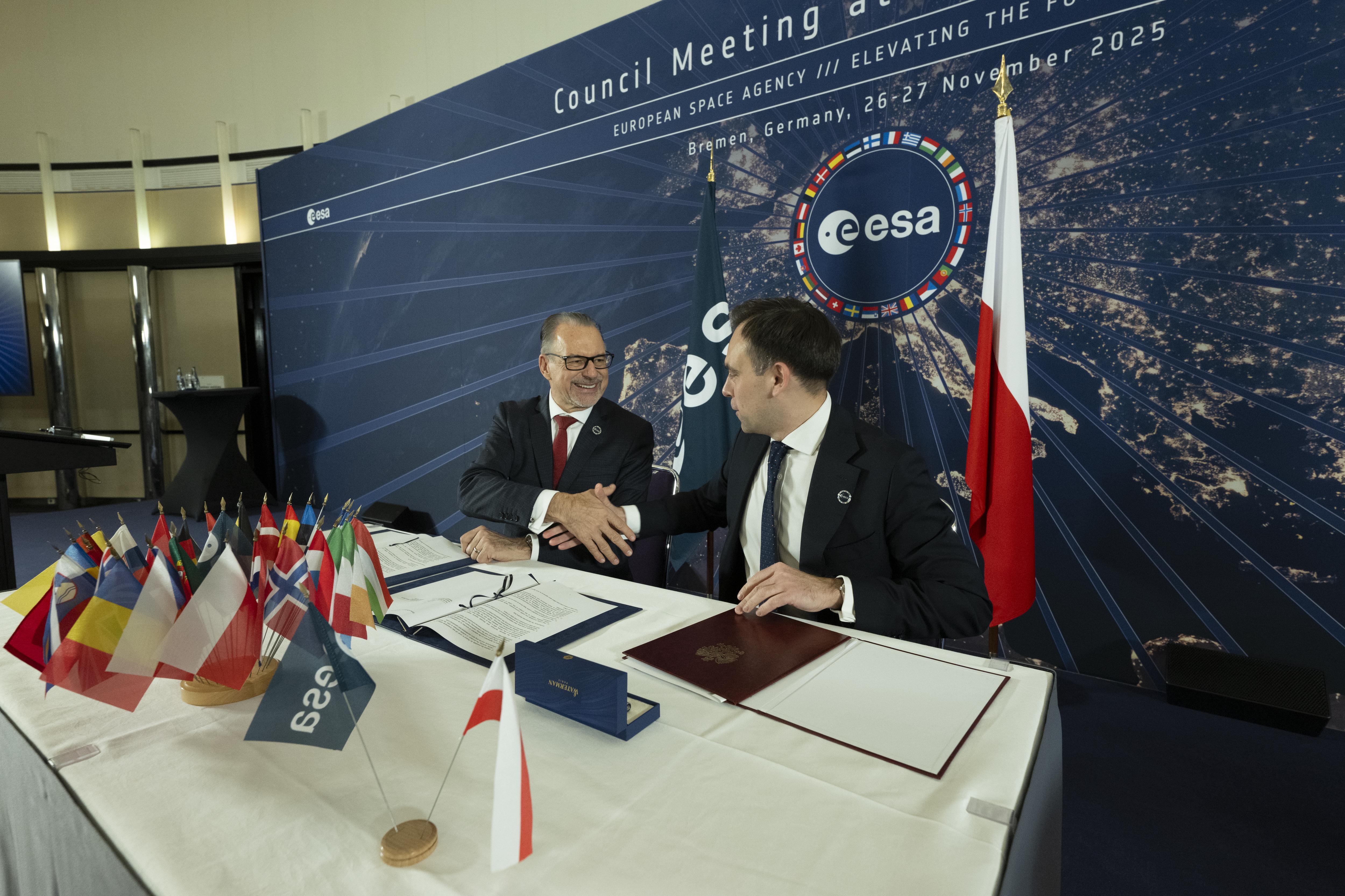 The European Space Agency and the Republic of Poland are considering the creation of a new ESA centre focusing on security to be located in Poland. The announcement was made as part of the outcomes of ESA's Ministerial Council (CM25), taking place in Bremen, Germany. The focus of the potential centre in Poland would be complementary to existing security and resilience activities, particularly at the European Space Security and Education Centre (ESEC) in Belgium. It would also support efficient and coherent development of European space security and resilience capabilities.