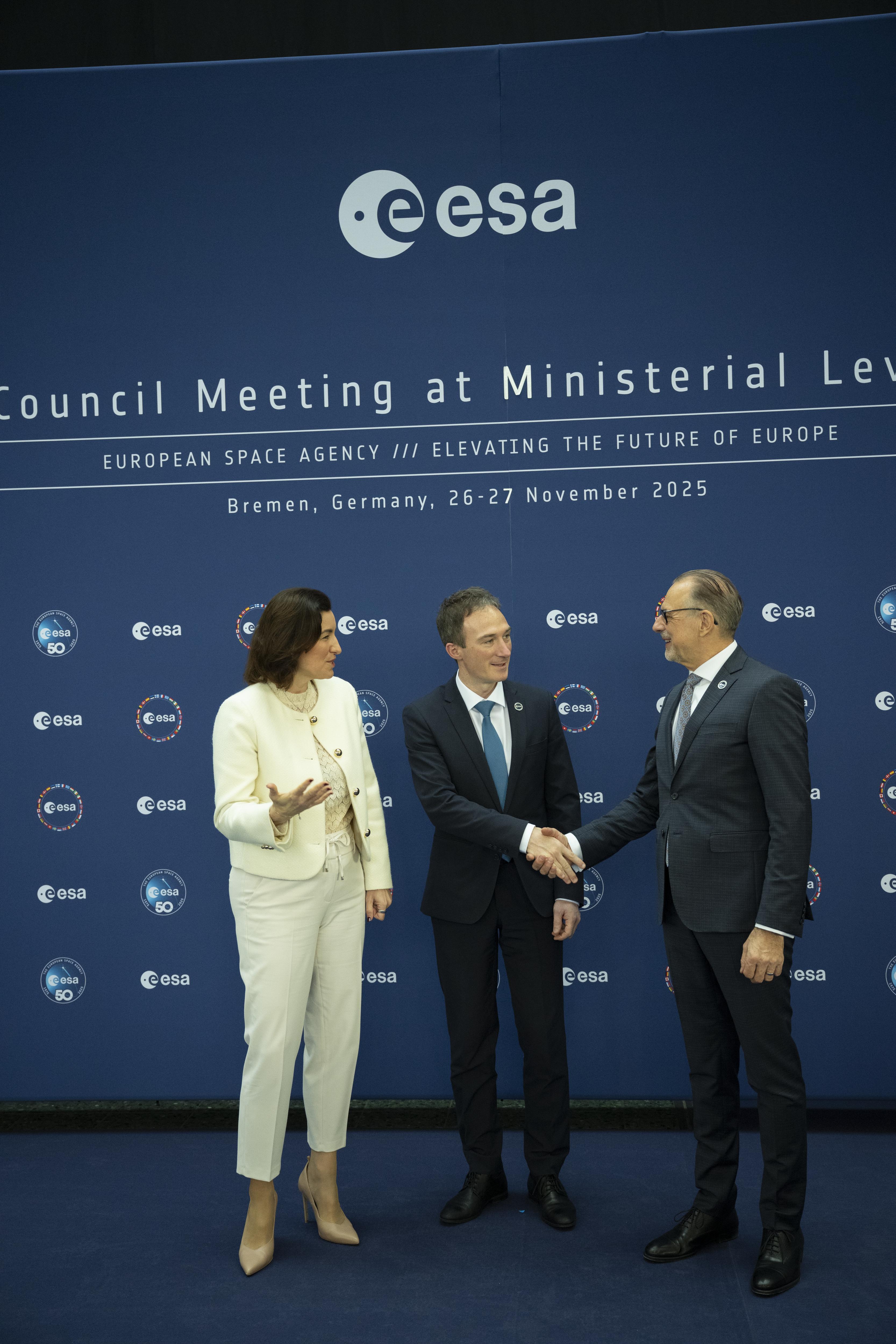 Arrival and greeting of Ministers and photos with ESA astronauts at the start of day 2 of the 2025 Ministerial Council in Bremen, Germany on 26 November 2025.