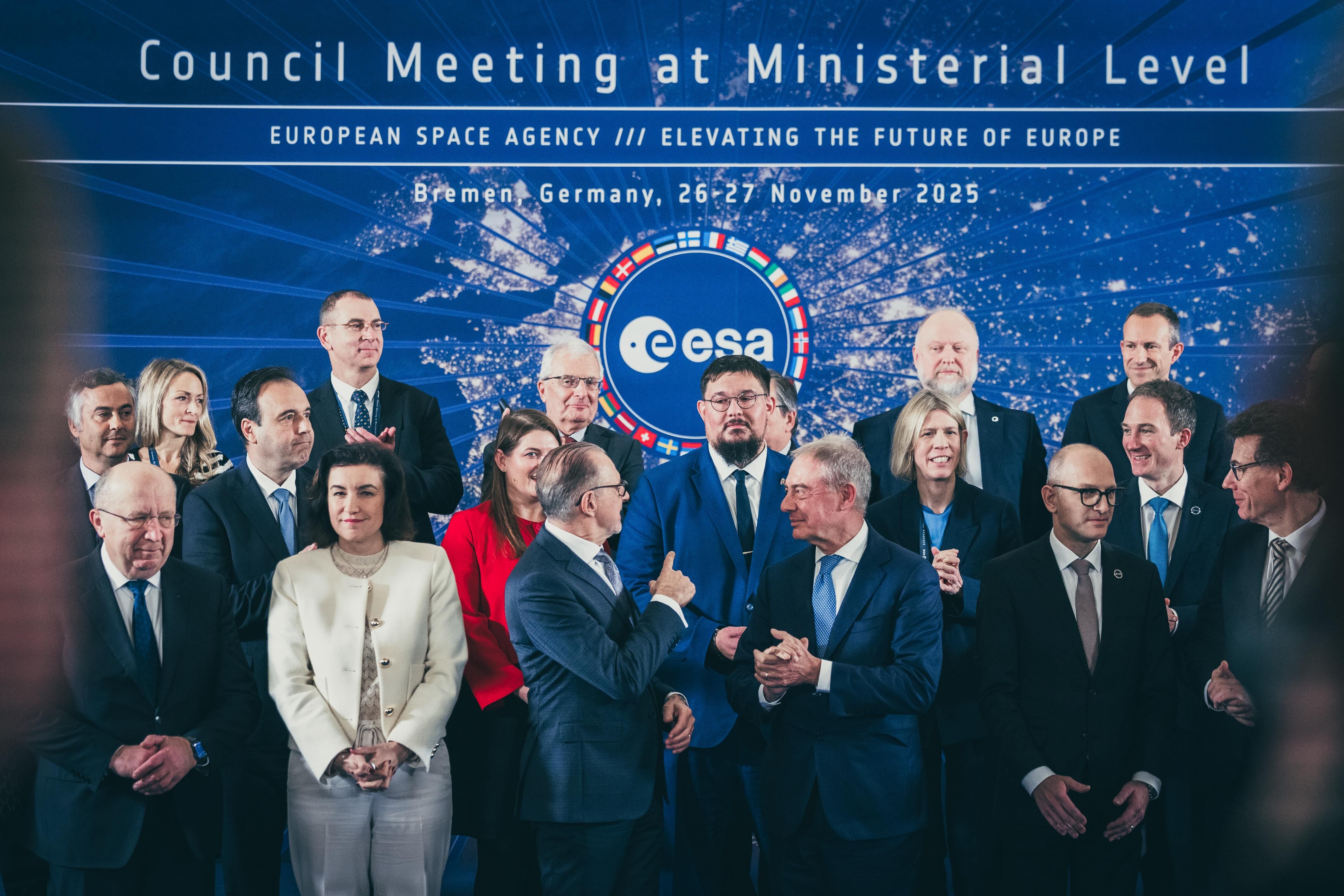 The Opening Session at the 2025 Ministerial Council in Bremen, Germany on 26 November 2025. Dorothee Bär, Federal Minister of Research, Technology and Space, Germany, opened the meeting. Adolfo Urso, Minister of Business and Made in Italy was elected Chair of CM25, the ESA Council at Ministerial level.