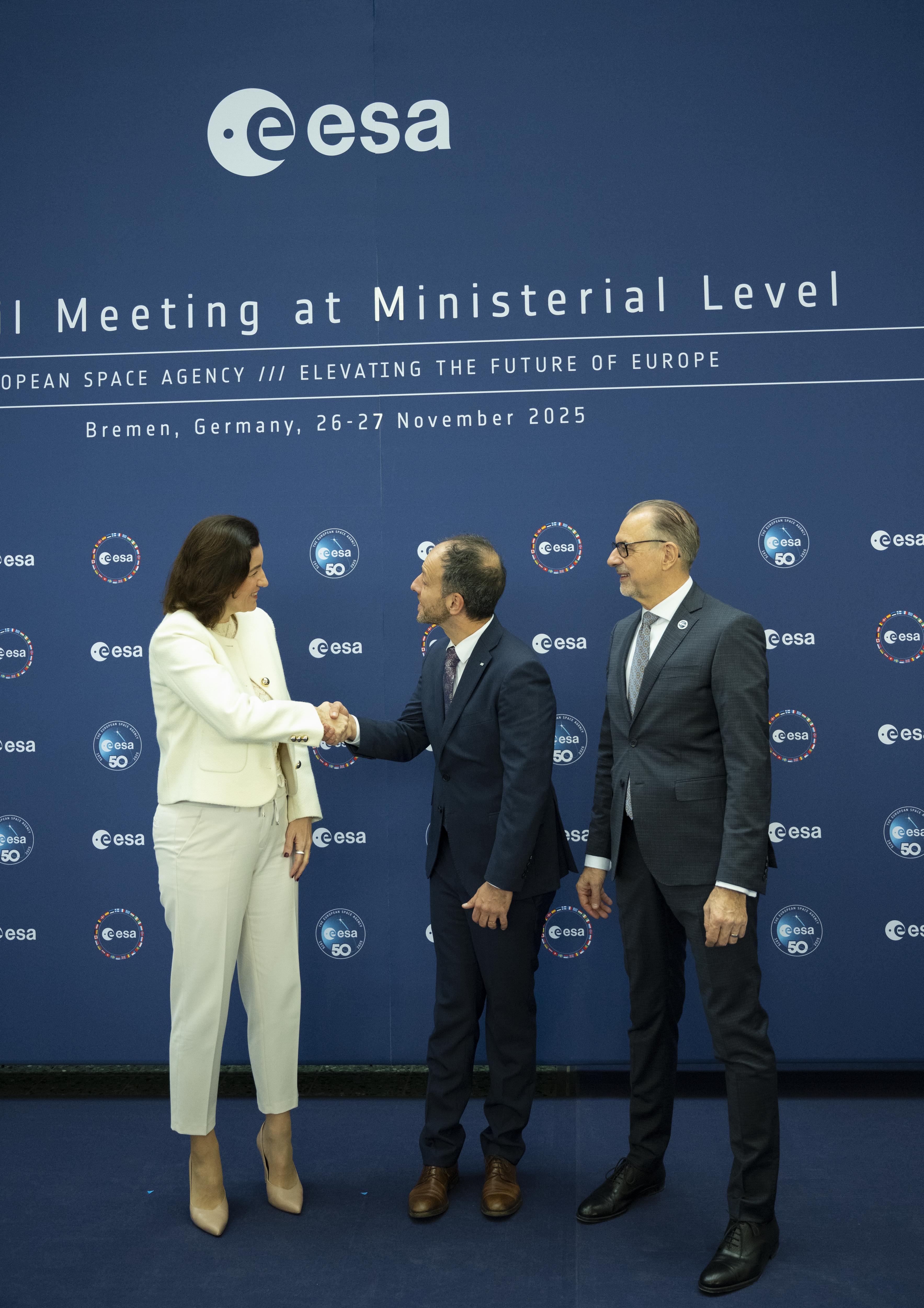 Arrival and greeting of Ministers and photos with ESA astronauts at the start of day 2 of the 2025 Ministerial Council in Bremen, Germany on 26 November 2025.