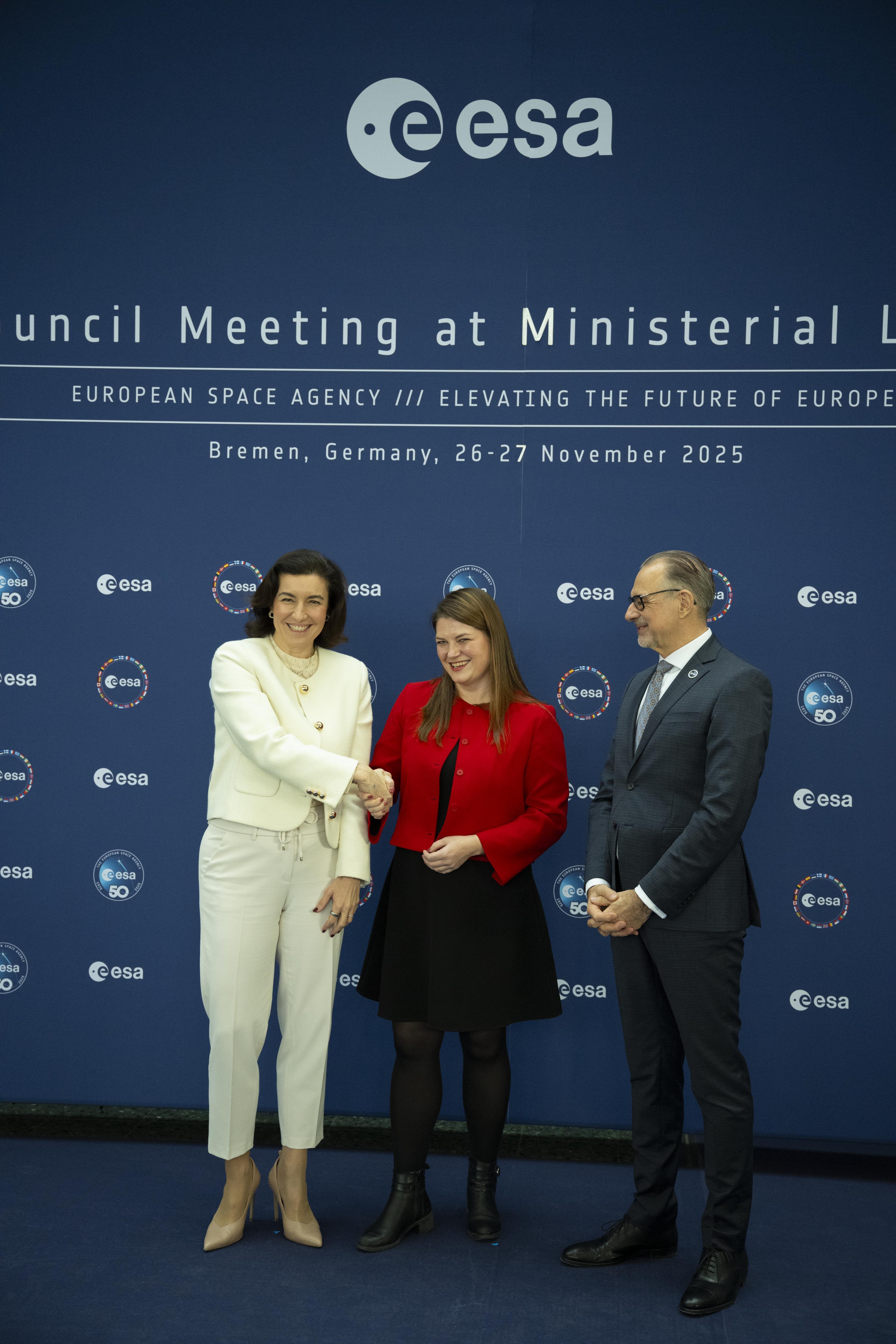 Arrival and greeting of Ministers and photos with ESA astronauts at the start of day 2 of the 2025 Ministerial Council in Bremen, Germany on 26 November 2025.