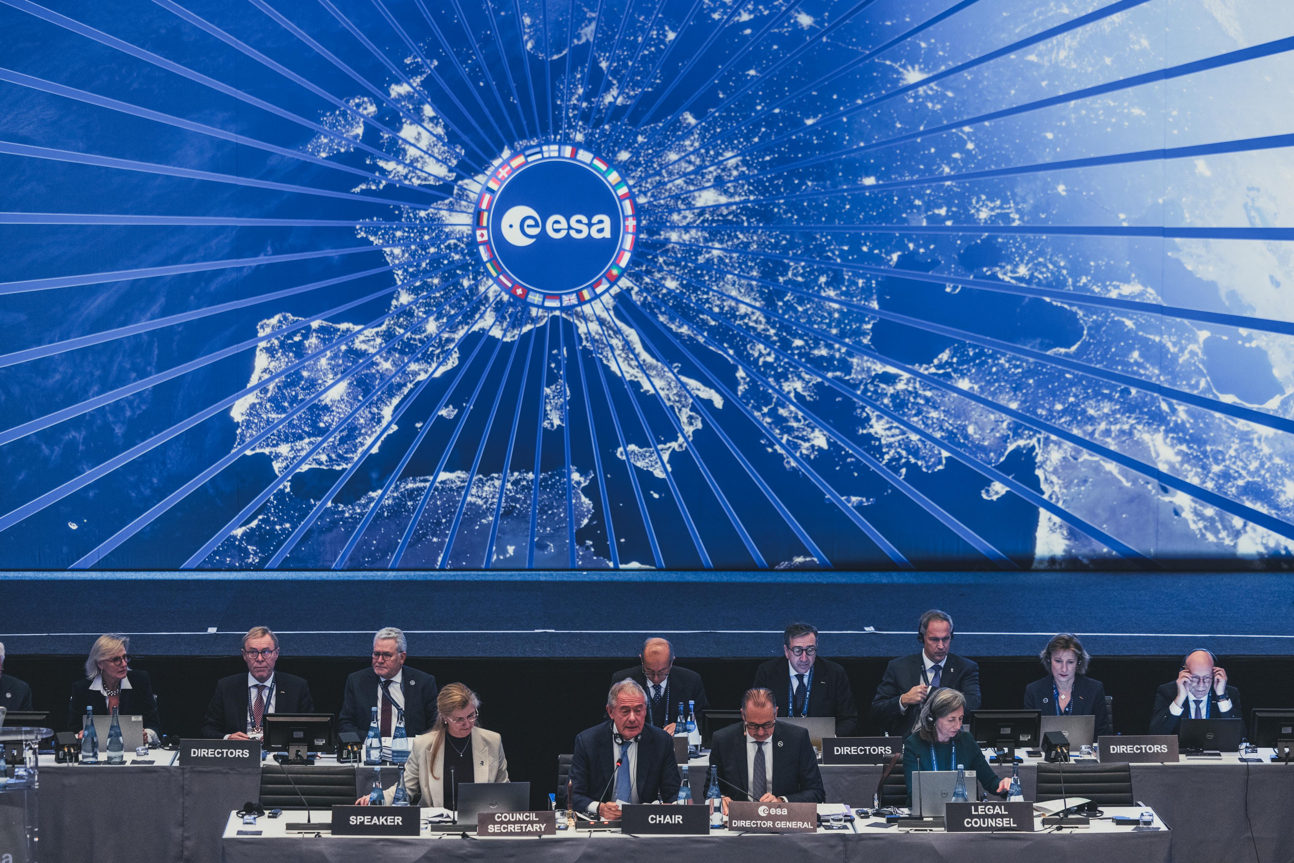 The Opening Session at the 2025 Ministerial Council in Bremen, Germany on 26 November 2025. Dorothee Bär, Federal Minister of Research, Technology and Space, Germany, opened the meeting. Adolfo Urso, Minister of Business and Made in Italy was elected Chair of CM25, the ESA Council at Ministerial level.