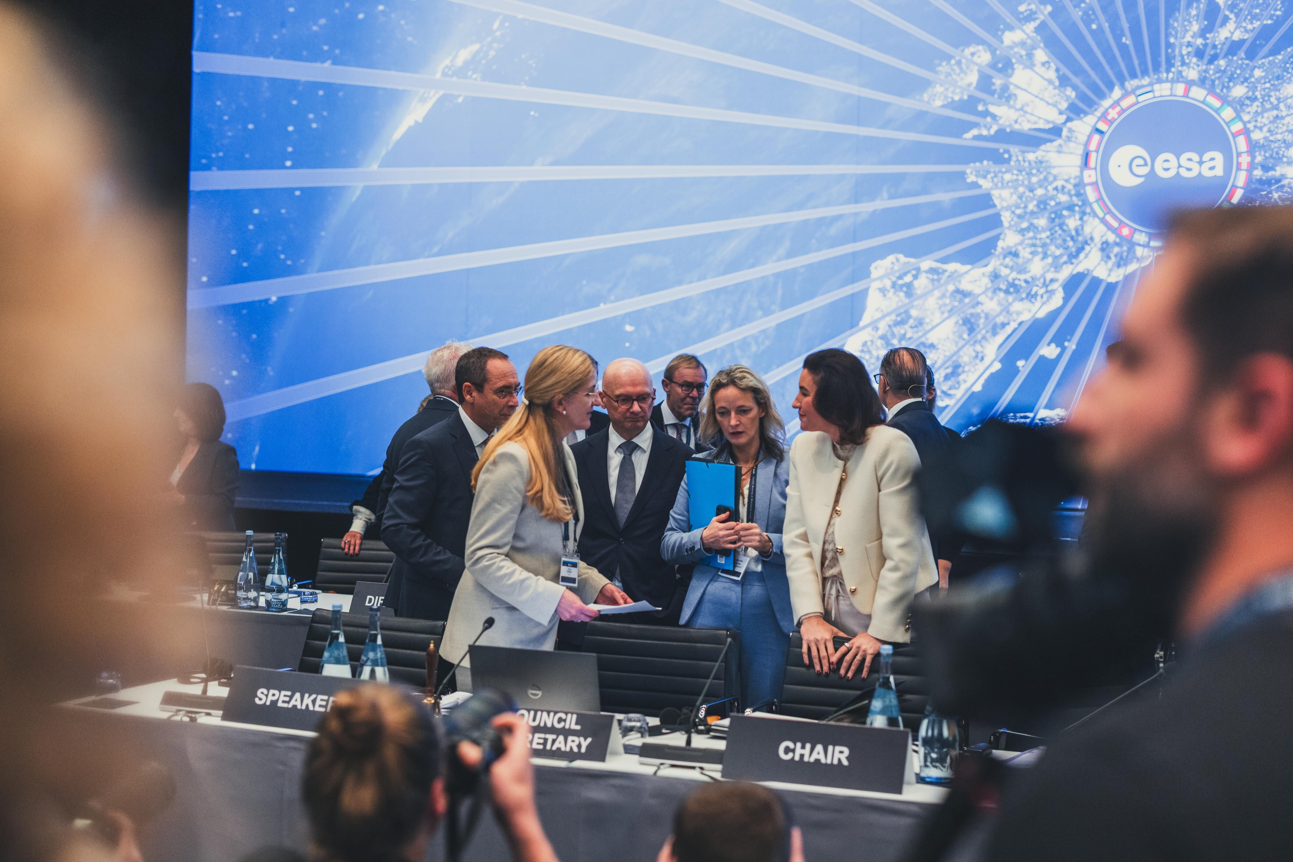 The Opening Session at the 2025 Ministerial Council in Bremen, Germany on 26 November 2025. Dorothee Bär, Federal Minister of Research, Technology and Space, Germany, opened the meeting. Adolfo Urso, Minister of Business and Made in Italy was elected Chair of CM25, the ESA Council at Ministerial level.