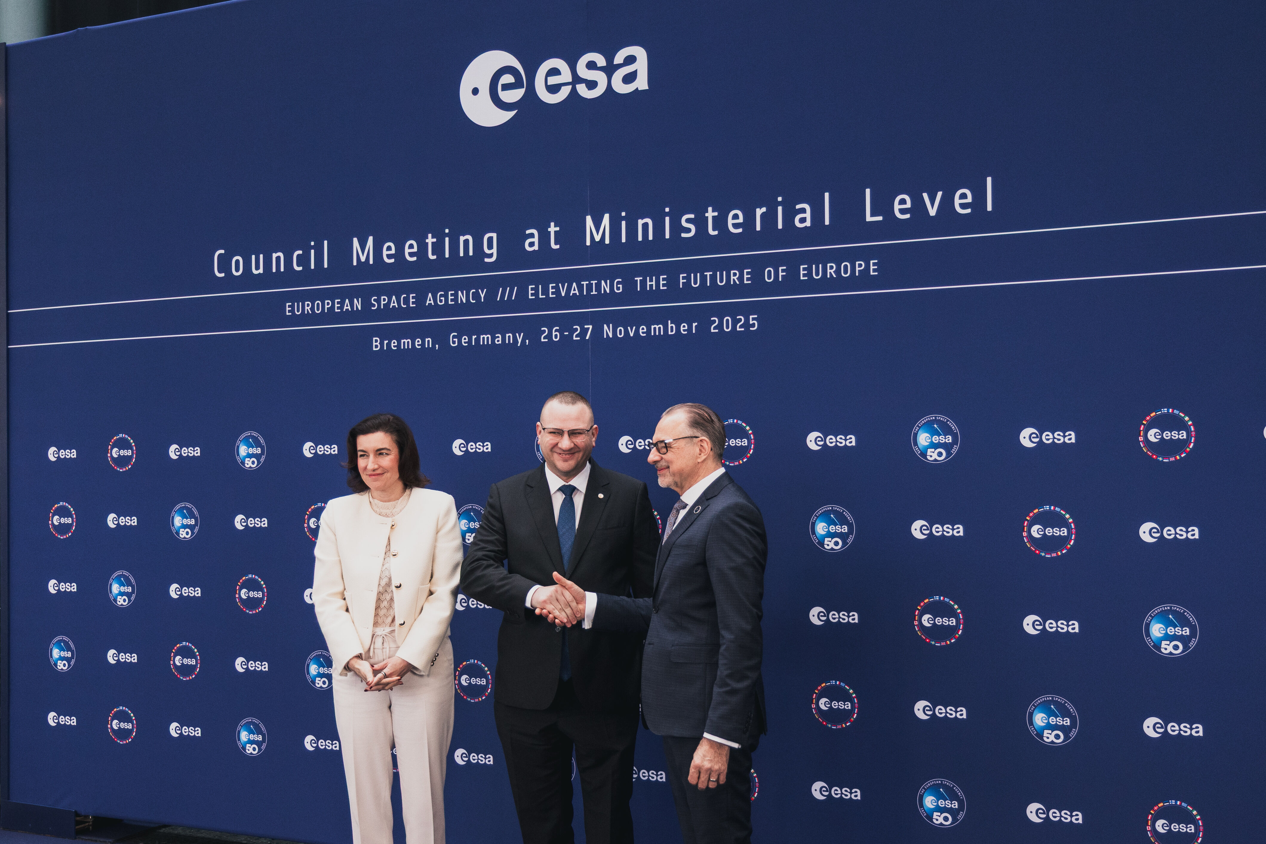 Arrival and greeting of Ministers and photos with ESA astronauts at the start of day 2 of the 2025 Ministerial Council in Bremen, Germany on 26 November 2025.