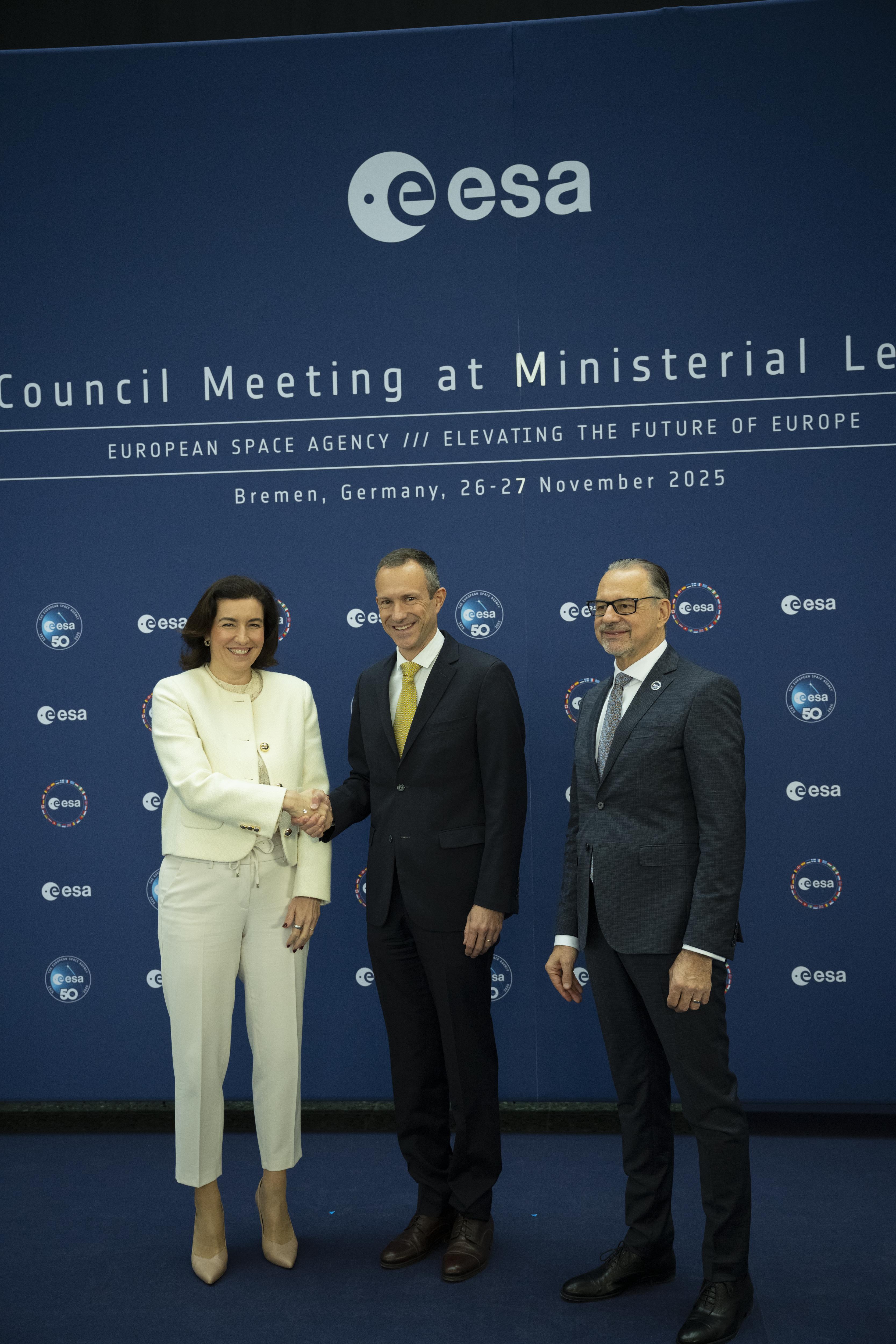 Arrival and greeting of Ministers and photos with ESA astronauts at the start of day 2 of the 2025 Ministerial Council in Bremen, Germany on 26 November 2025.