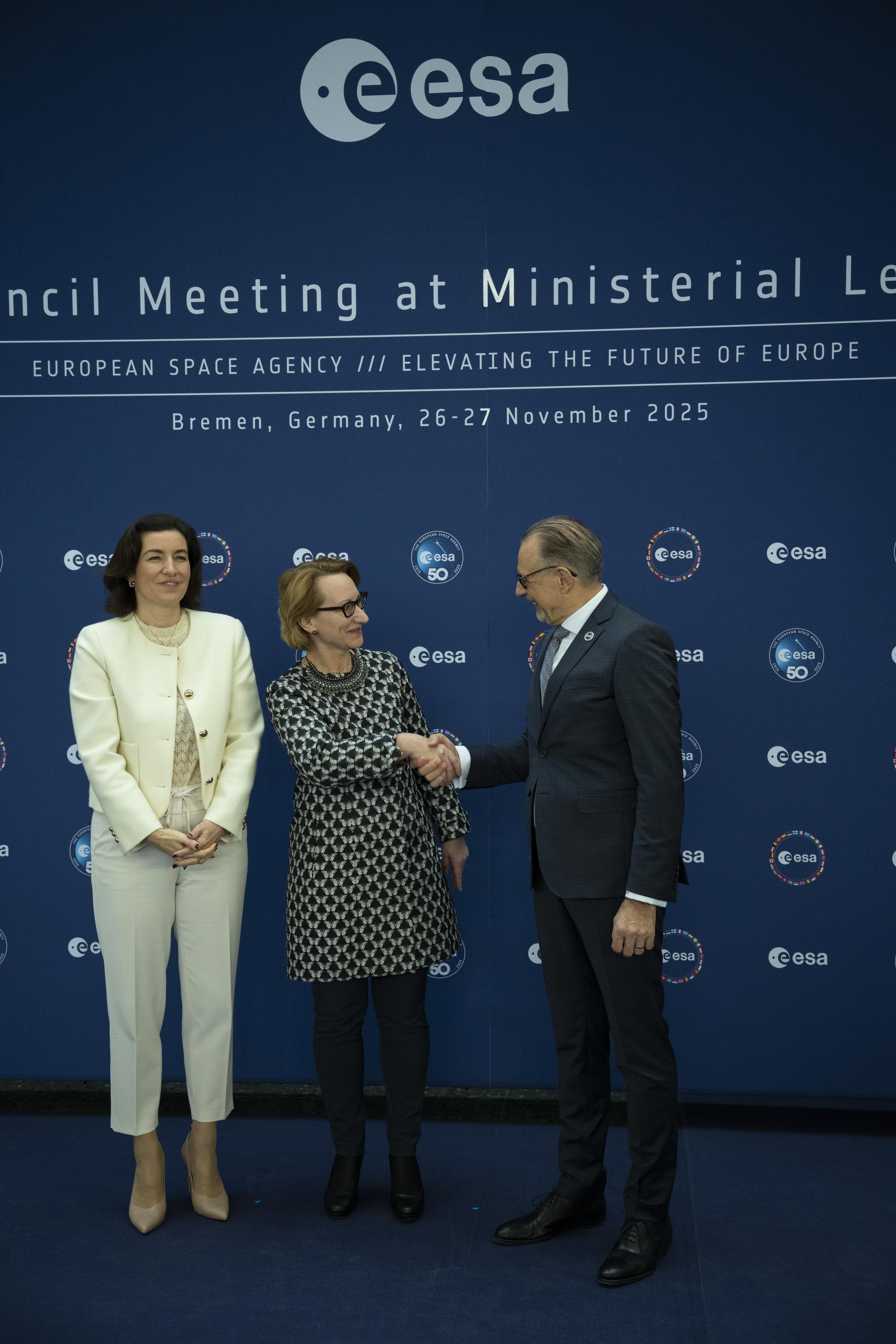 Arrival and greeting of Ministers and photos with ESA astronauts at the start of day 2 of the 2025 Ministerial Council in Bremen, Germany on 26 November 2025.