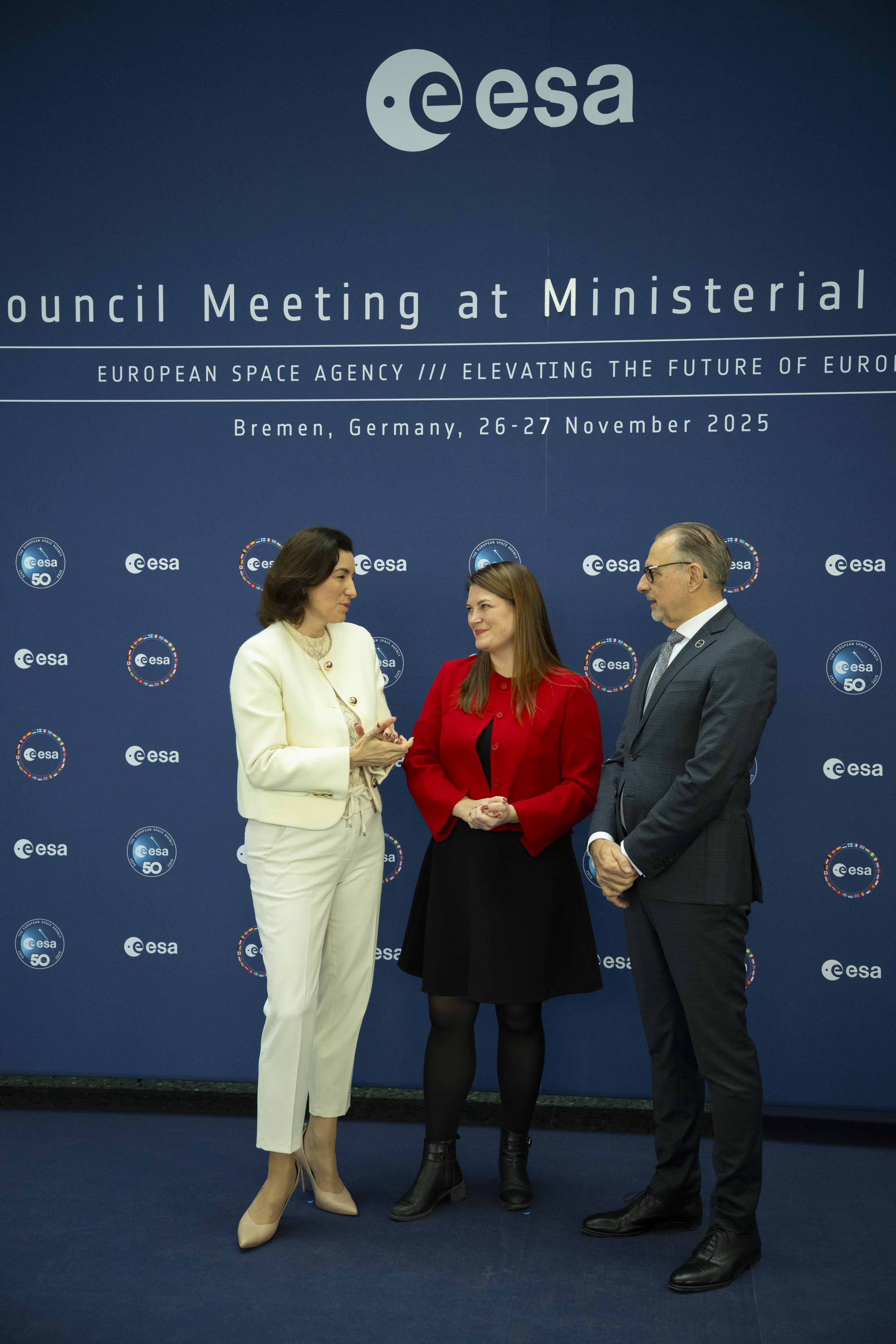 Arrival and greeting of Ministers and photos with ESA astronauts at the start of day 2 of the 2025 Ministerial Council in Bremen, Germany on 26 November 2025.
