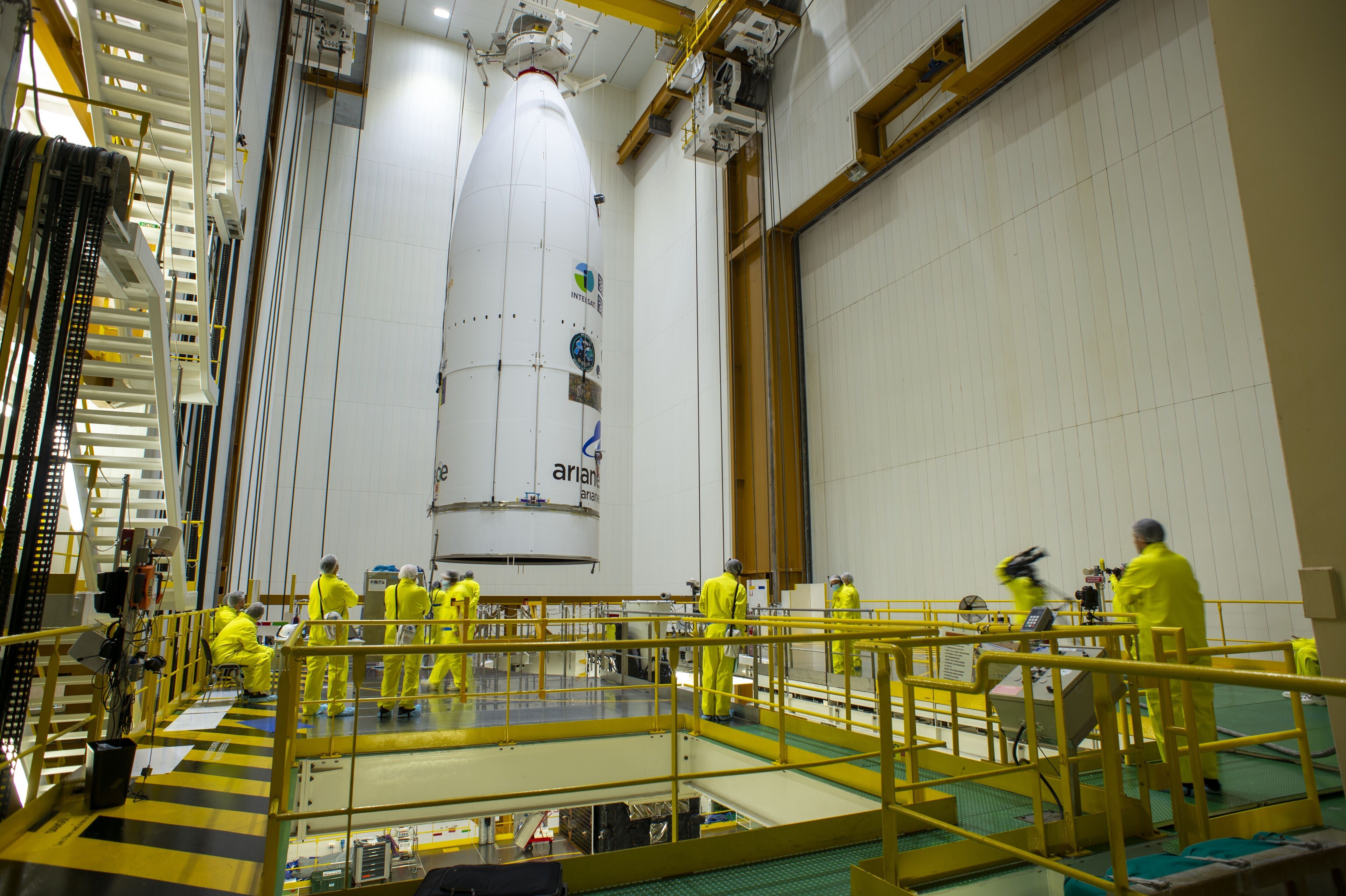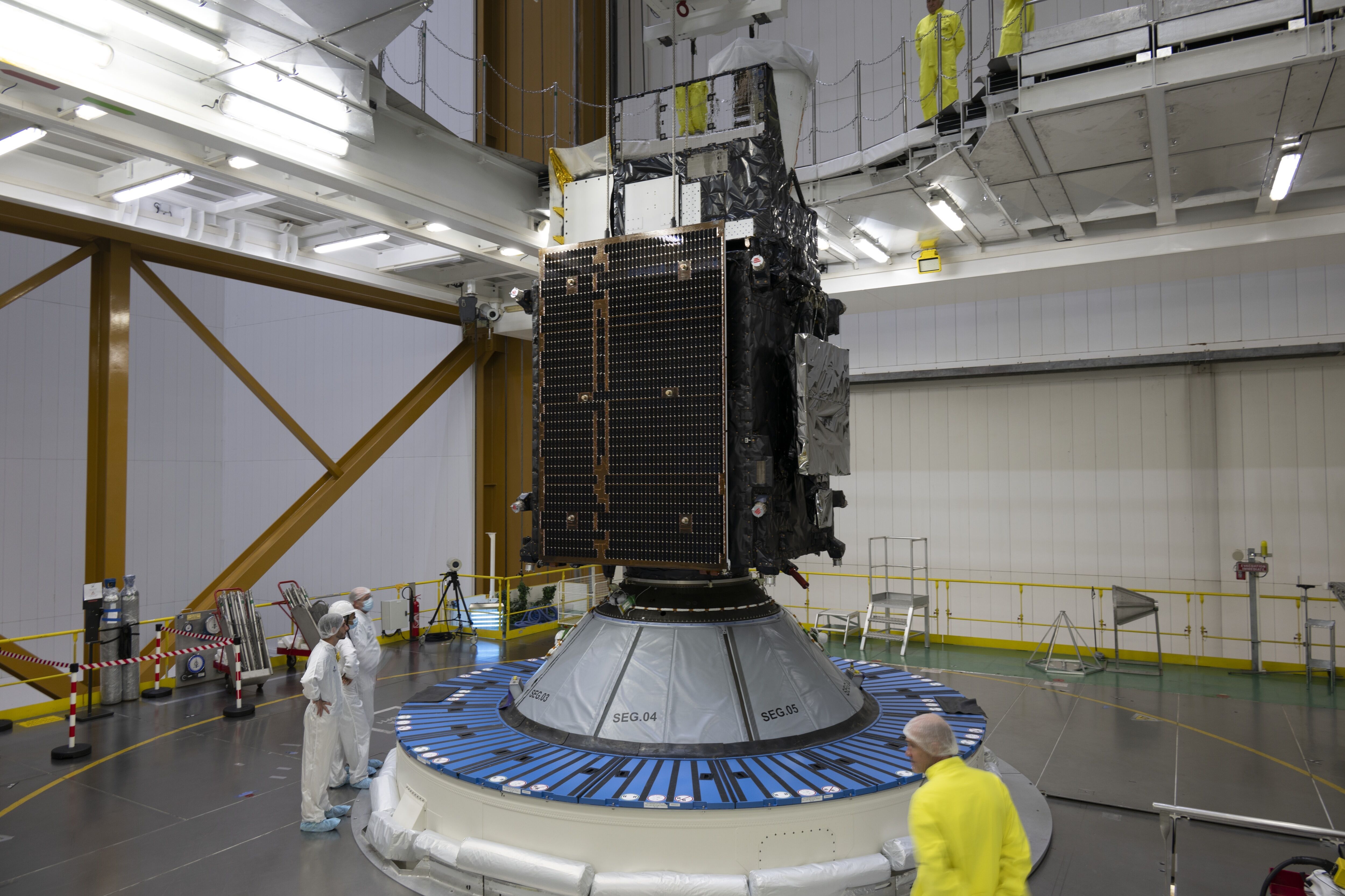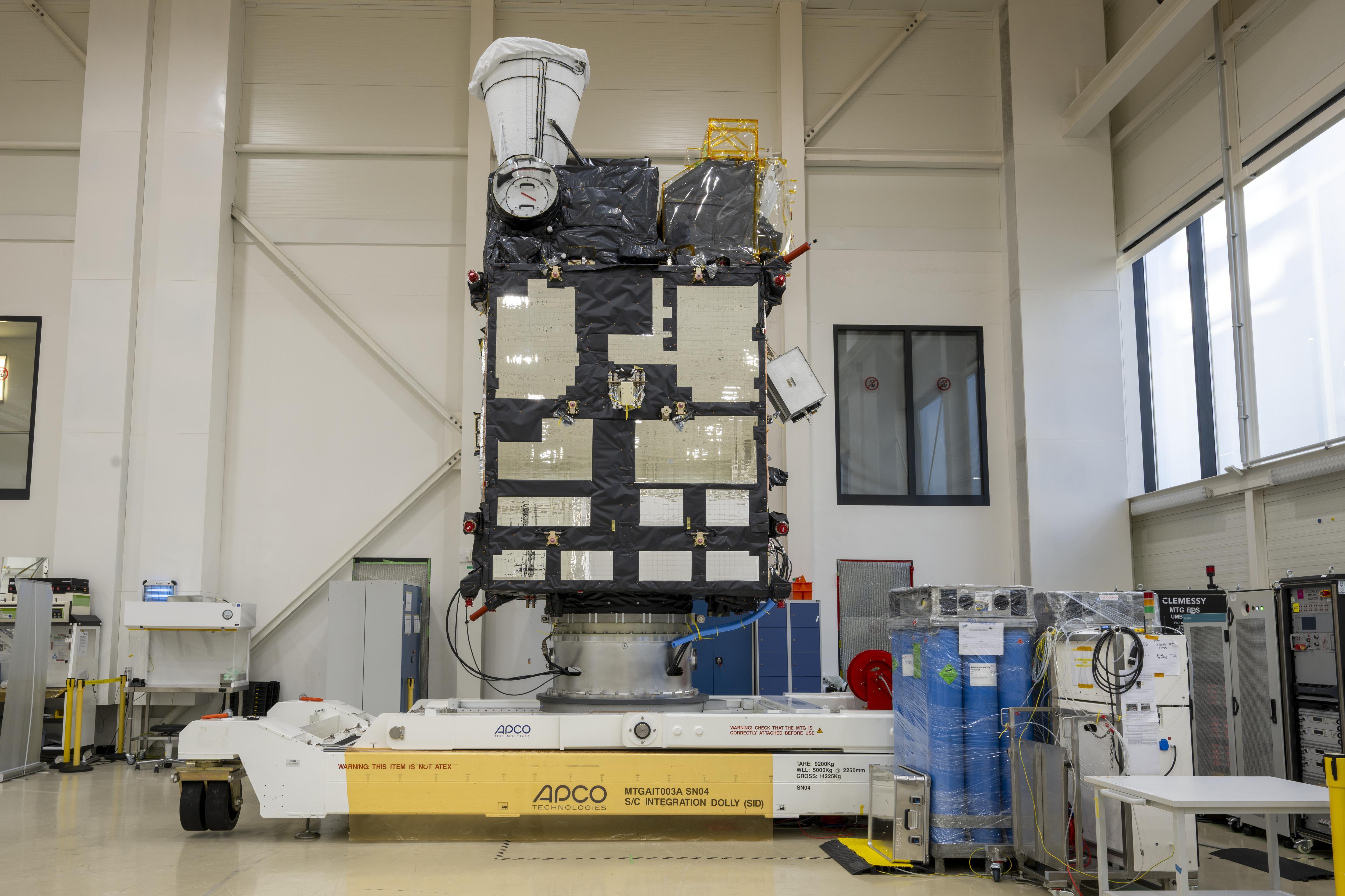 With launch set for 13 December, the Ariane 5 rocket carrying the Meteosat Third Generation Imager (MTG-I1) satellite ready on the launch pad. The rocket also carries two ‘co-passenger’ satellites: Intelsat Galaxy 35 and 36. MTGI-1 carries two completely new instrument that will deliver high-quality data to improve weather forecasts: a Flexible Combined Imager and Europe’s first Lightning Imager. Once in geostationary orbit, 36,000 km above the equator, the all-new MTG-I1 weather satellite will provide state-of-the art observations of Earth’s atmosphere and realtime monitoring of lightning events, taking weather forecasting to the next level. MTGI-1 carries two completely new instrument that will deliver high-quality data to improve weather forecasts: a Flexible Combined Imager and Europe’s first Lightning Imager. The Flexible Combined Imager has more spectral channels and is capable of imaging in higher resolution compared to current Meteosat Second Generation’s Spinning Enhanced Visible and Infrared instrument. The Lightning Imager offers a completely new capability for European meteorological satellites. It will continuously monitor more than 80% of the Earth disc for lightning discharges, taking place either between clouds or between clouds and the ground. This new instrument will allow severe storms to be detected in their early stages and will therefore be key for issuing timely warnings. Its detectors are so sensitive that will be able to detect relatively weak lightning, even in full daylight.