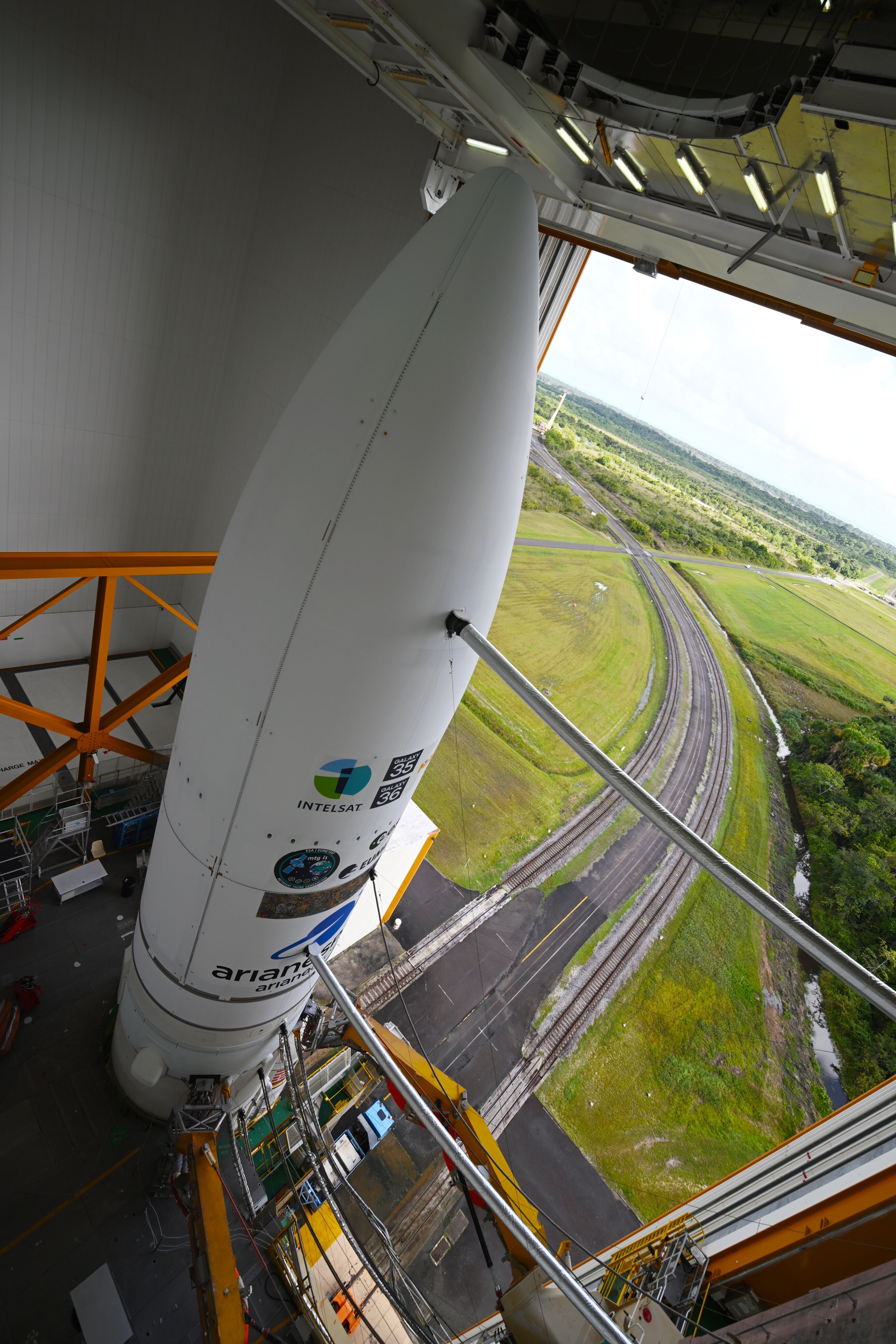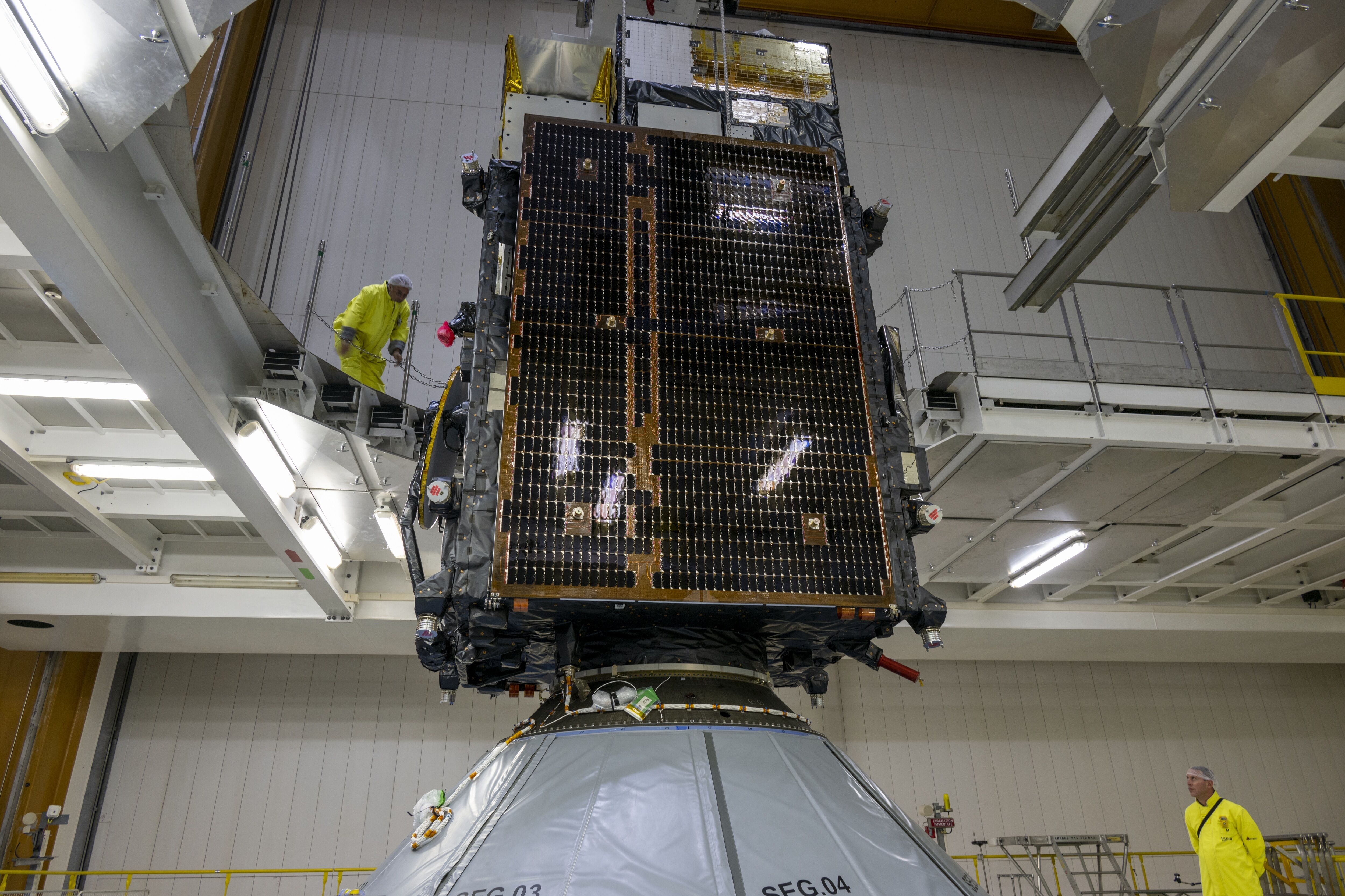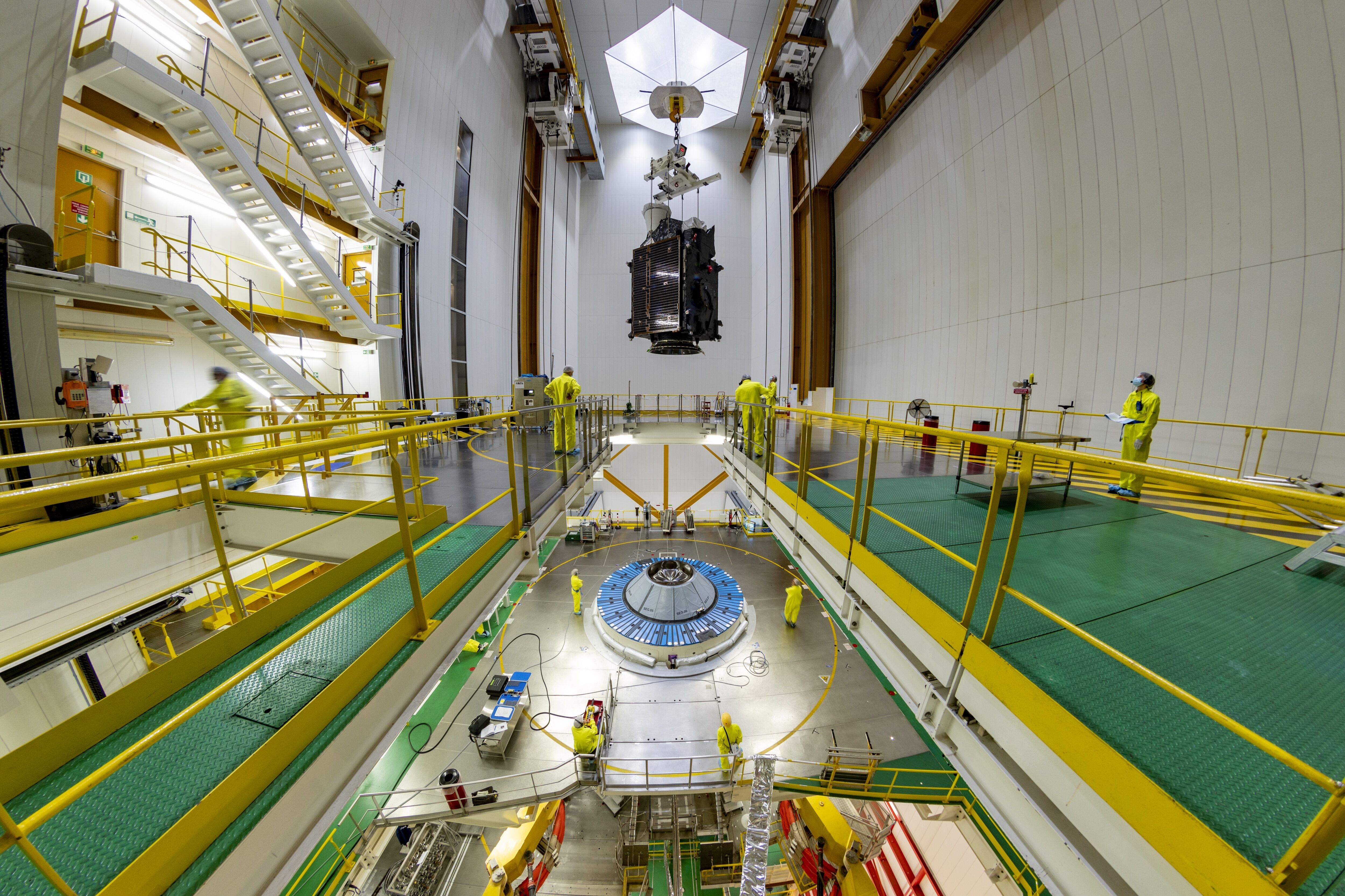 With launch set for 13 December, the Ariane 5 rocket carrying the Meteosat Third Generation Imager (MTG-I1) satellite ready on the launch pad. The rocket also carries two ‘co-passenger’ satellites: Intelsat Galaxy 35 and 36. MTGI-1 carries two completely new instrument that will deliver high-quality data to improve weather forecasts: a Flexible Combined Imager and Europe’s first Lightning Imager. Once in geostationary orbit, 36,000 km above the equator, the all-new MTG-I1 weather satellite will provide state-of-the art observations of Earth’s atmosphere and realtime monitoring of lightning events, taking weather forecasting to the next level. MTGI-1 carries two completely new instrument that will deliver high-quality data to improve weather forecasts: a Flexible Combined Imager and Europe’s first Lightning Imager. The Flexible Combined Imager has more spectral channels and is capable of imaging in higher resolution compared to current Meteosat Second Generation’s Spinning Enhanced Visible and Infrared instrument. The Lightning Imager offers a completely new capability for European meteorological satellites. It will continuously monitor more than 80% of the Earth disc for lightning discharges, taking place either between clouds or between clouds and the ground. This new instrument will allow severe storms to be detected in their early stages and will therefore be key for issuing timely warnings. Its detectors are so sensitive that will be able to detect relatively weak lightning, even in full daylight.