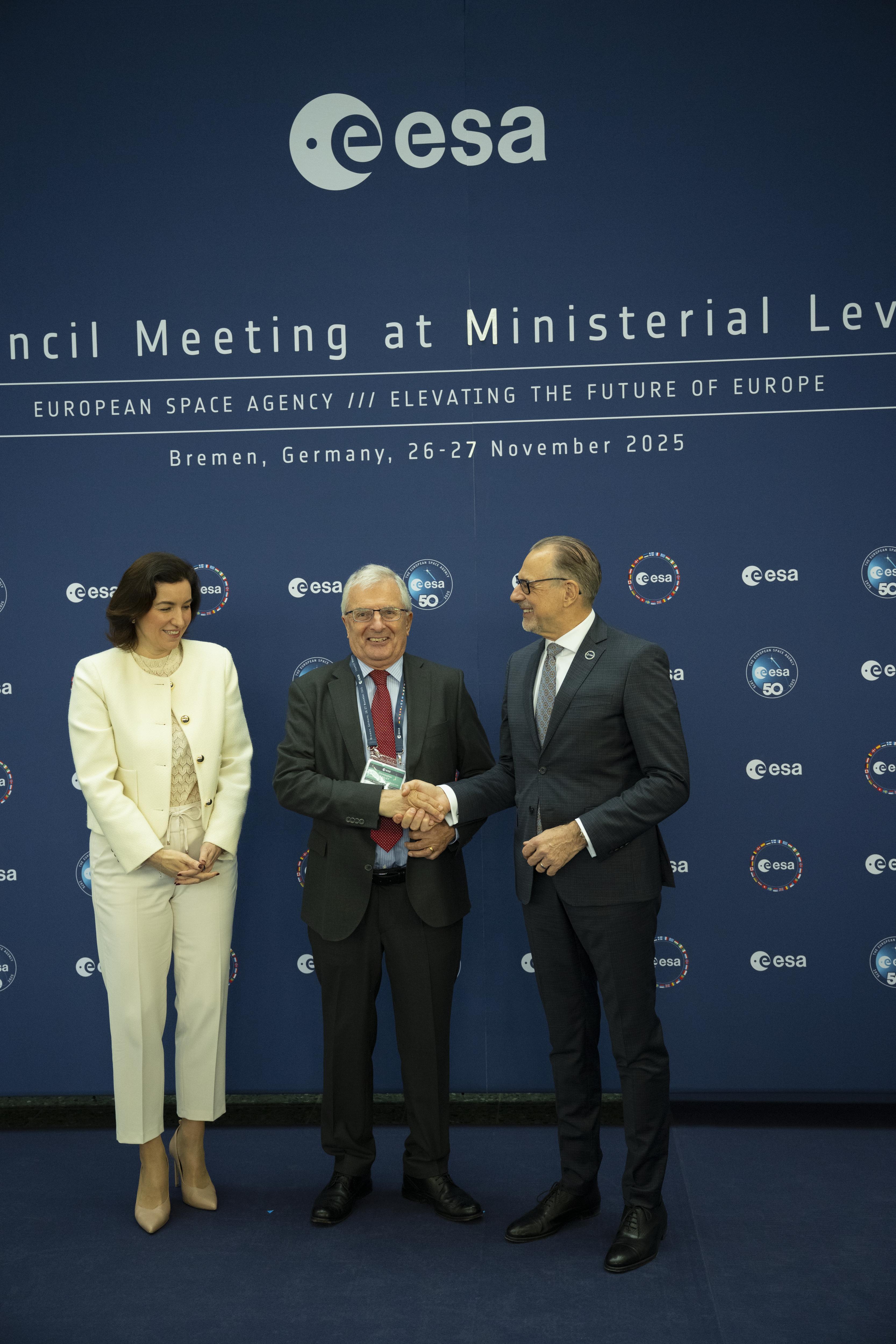 Arrival and greeting of Ministers and photos with ESA astronauts at the start of day 2 of the 2025 Ministerial Council in Bremen, Germany on 26 November 2025.