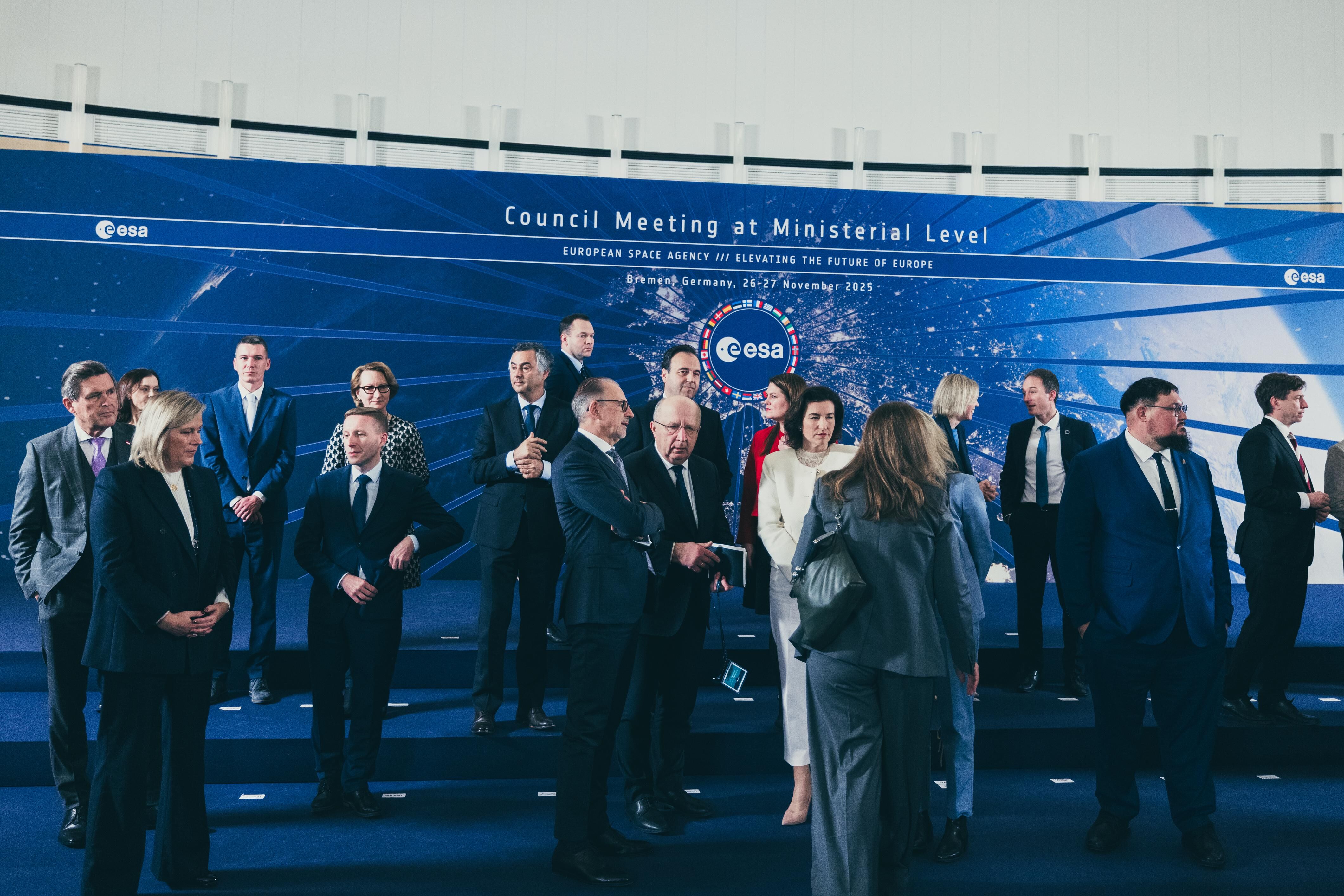 The Opening Session at the 2025 Ministerial Council in Bremen, Germany on 26 November 2025. Dorothee Bär, Federal Minister of Research, Technology and Space, Germany, opened the meeting. Adolfo Urso, Minister of Business and Made in Italy was elected Chair of CM25, the ESA Council at Ministerial level.
