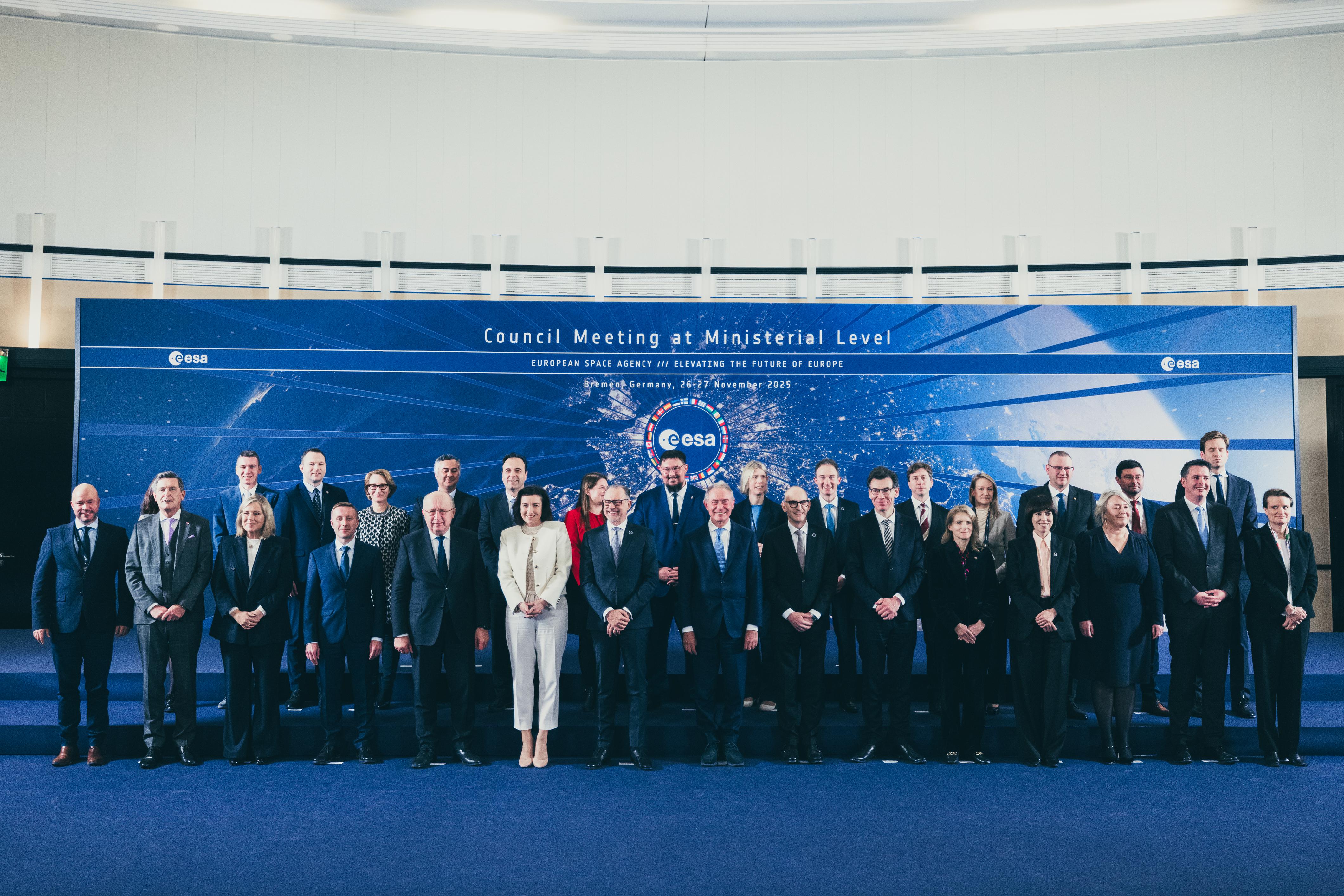 The Opening Session at the 2025 Ministerial Council in Bremen, Germany on 26 November 2025. Dorothee Bär, Federal Minister of Research, Technology and Space, Germany, opened the meeting. Adolfo Urso, Minister of Business and Made in Italy was elected Chair of CM25, the ESA Council at Ministerial level.