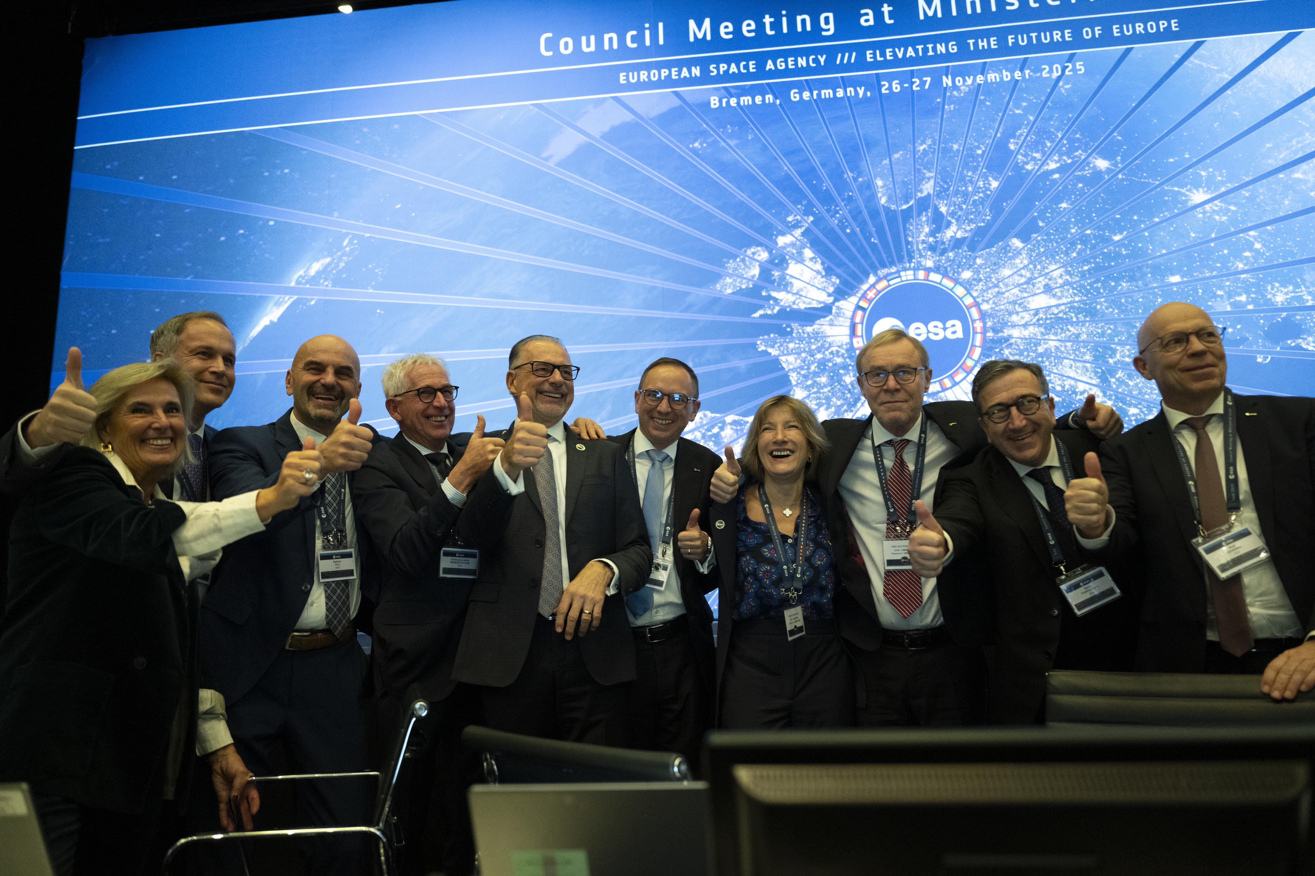 The Opening Session at the 2025 Ministerial Council in Bremen, Germany on 26 November 2025. Dorothee Bär, Federal Minister of Research, Technology and Space, Germany, opened the meeting. Adolfo Urso, Minister of Business and Made in Italy was elected Chair of CM25, the ESA Council at Ministerial level.