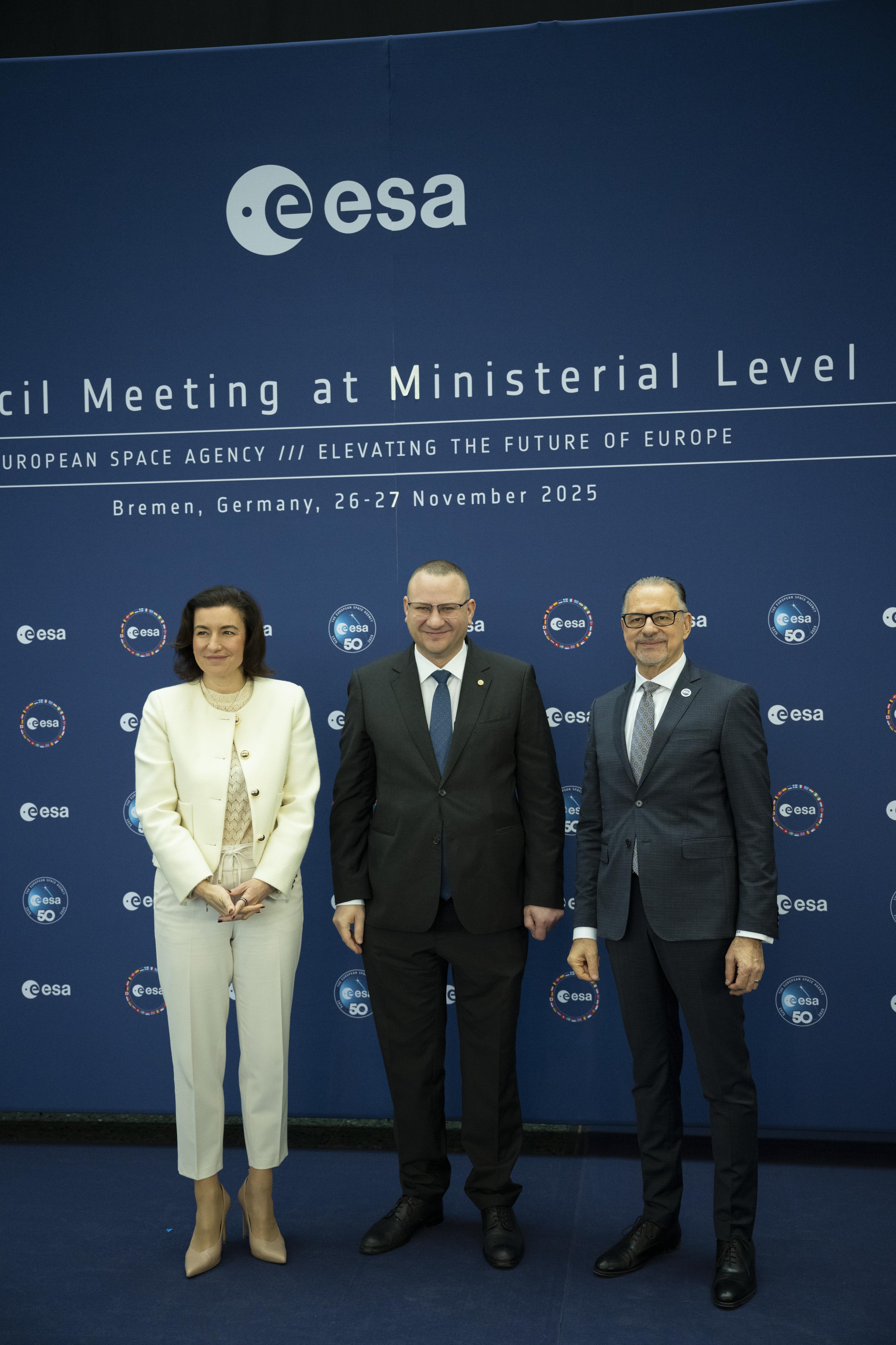 Arrival and greeting of Ministers and photos with ESA astronauts at the start of day 2 of the 2025 Ministerial Council in Bremen, Germany on 26 November 2025.