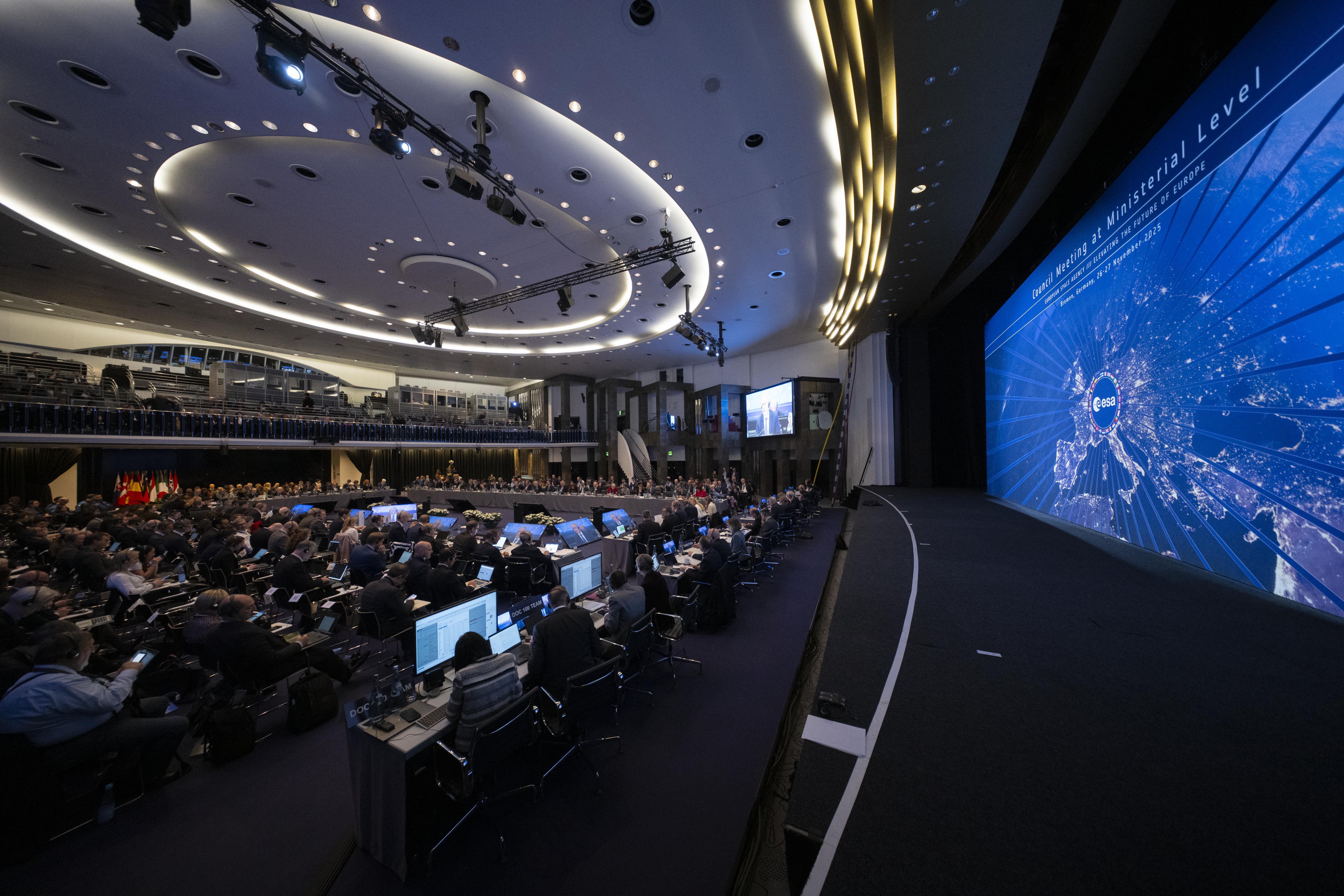 Wide angle shots of the conference room at the 2025 Ministerial Council in Bremen, Germany on 27 November 2025.