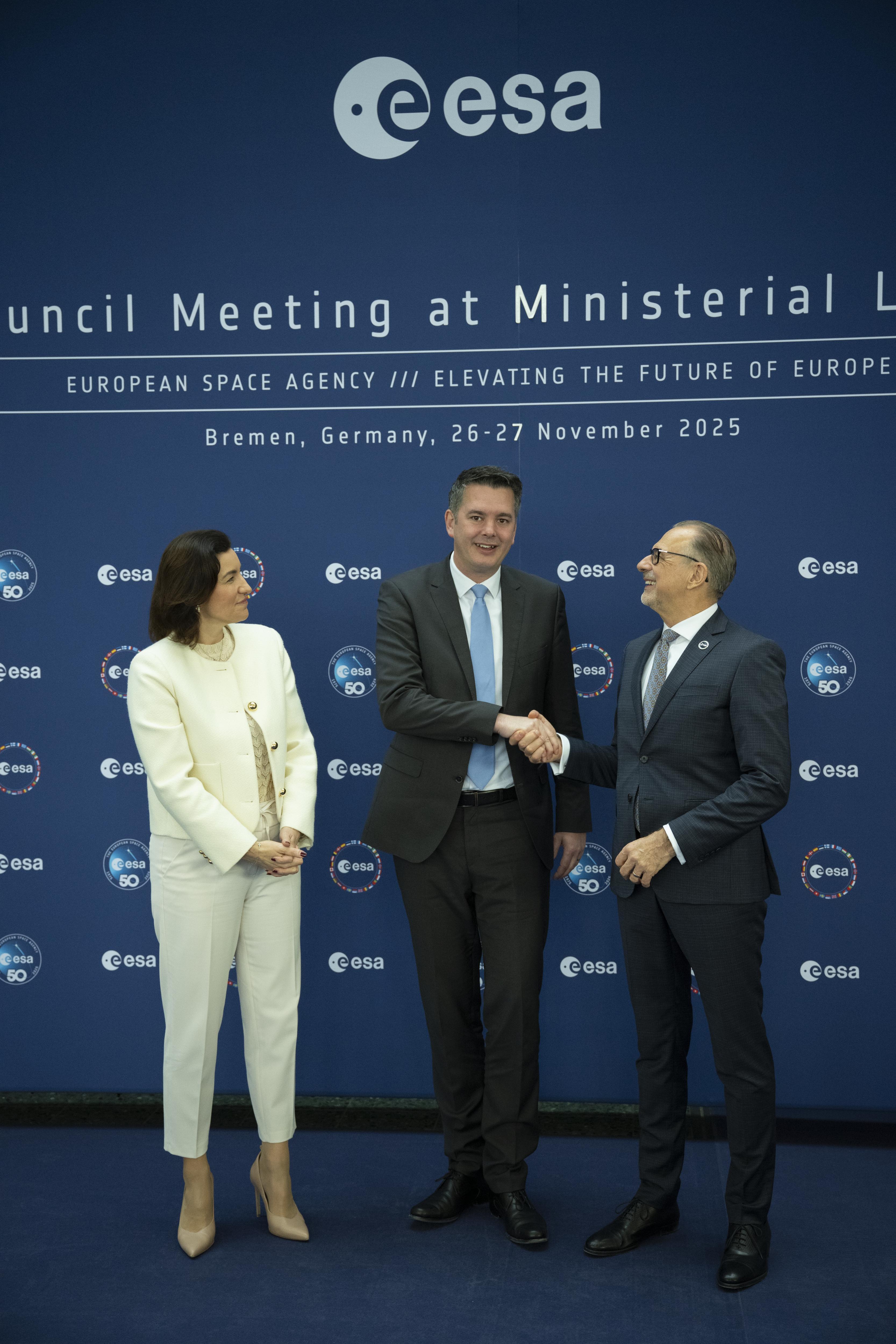 Arrival and greeting of Ministers and photos with ESA astronauts at the start of day 2 of the 2025 Ministerial Council in Bremen, Germany on 26 November 2025.