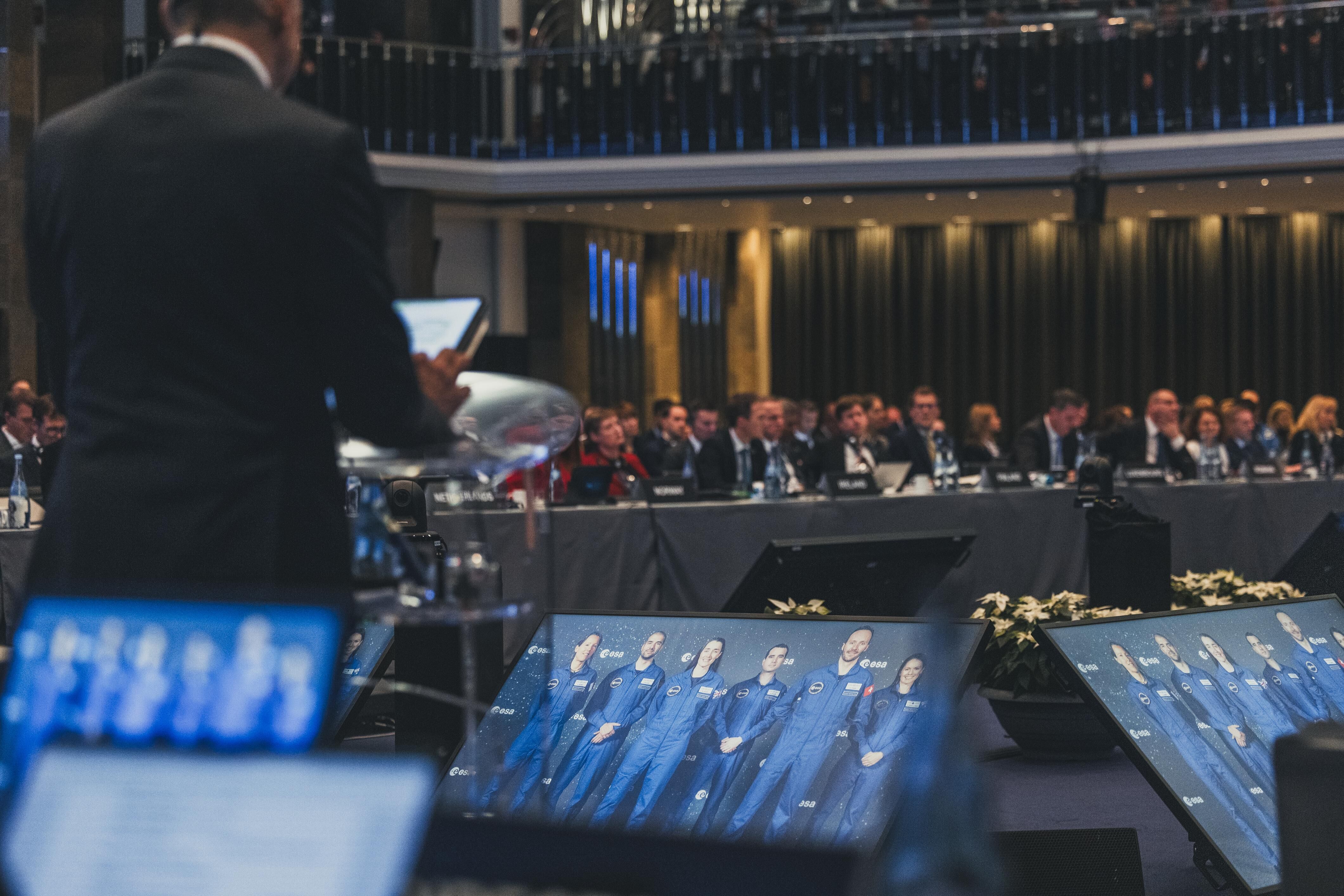 The Opening Session at the 2025 Ministerial Council in Bremen, Germany on 26 November 2025. Dorothee Bär, Federal Minister of Research, Technology and Space, Germany, opened the meeting. Adolfo Urso, Minister of Business and Made in Italy was elected Chair of CM25, the ESA Council at Ministerial level.