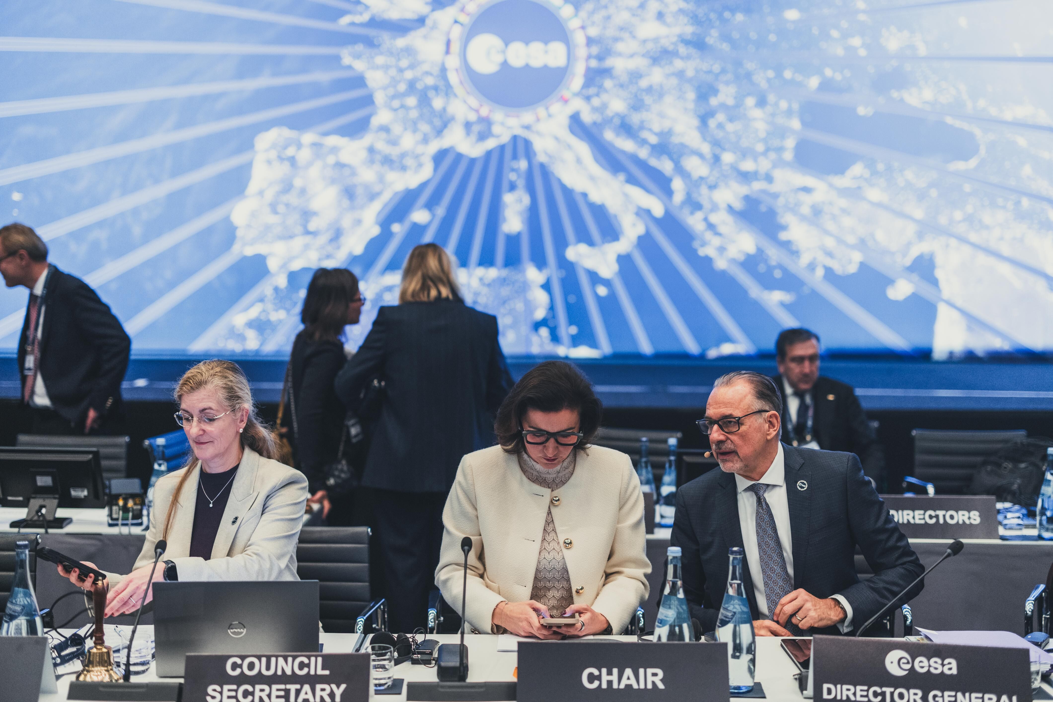 The Opening Session at the 2025 Ministerial Council in Bremen, Germany on 26 November 2025. Dorothee Bär, Federal Minister of Research, Technology and Space, Germany, opened the meeting. Adolfo Urso, Minister of Business and Made in Italy was elected Chair of CM25, the ESA Council at Ministerial level.