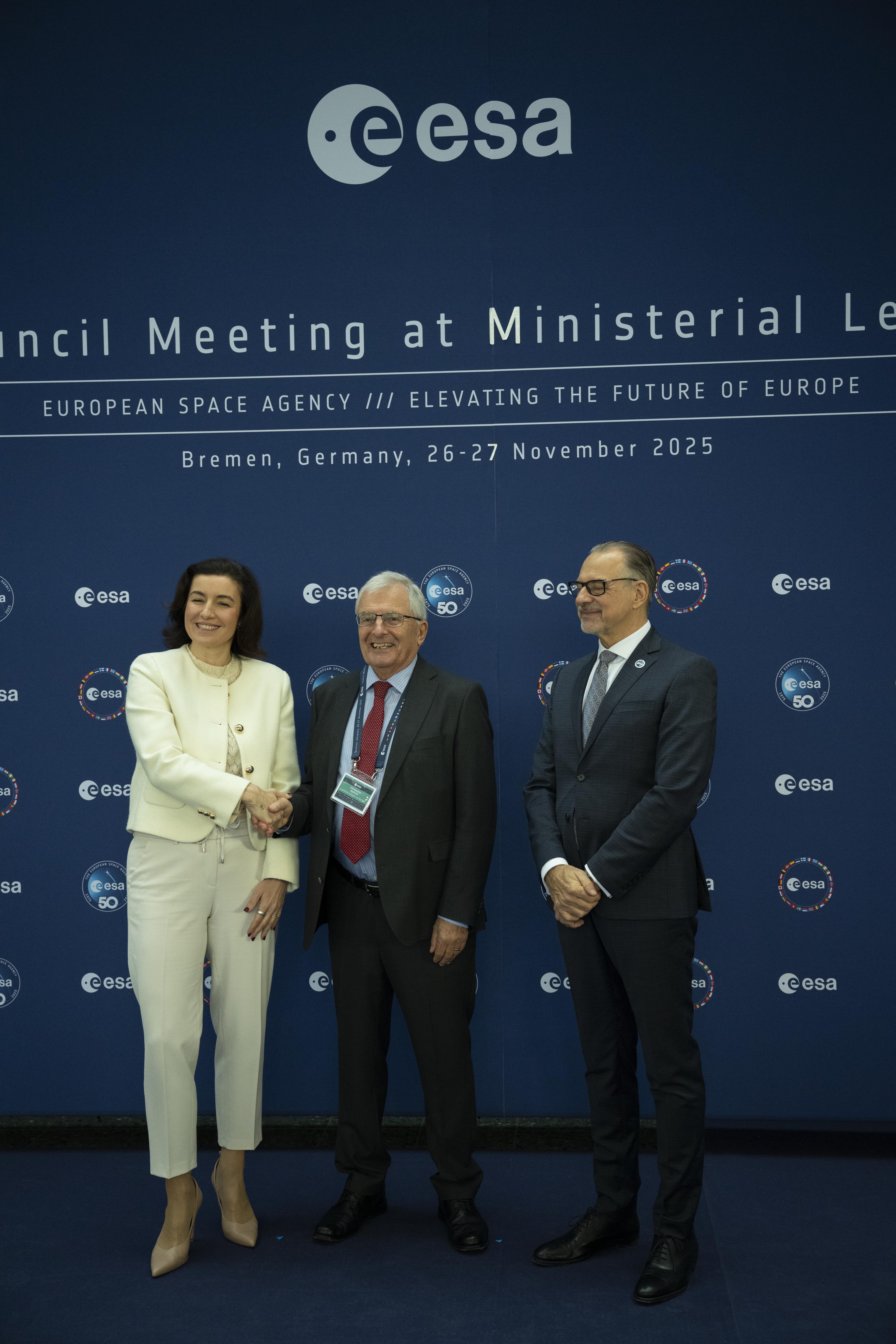 Arrival and greeting of Ministers and photos with ESA astronauts at the start of day 2 of the 2025 Ministerial Council in Bremen, Germany on 26 November 2025.
