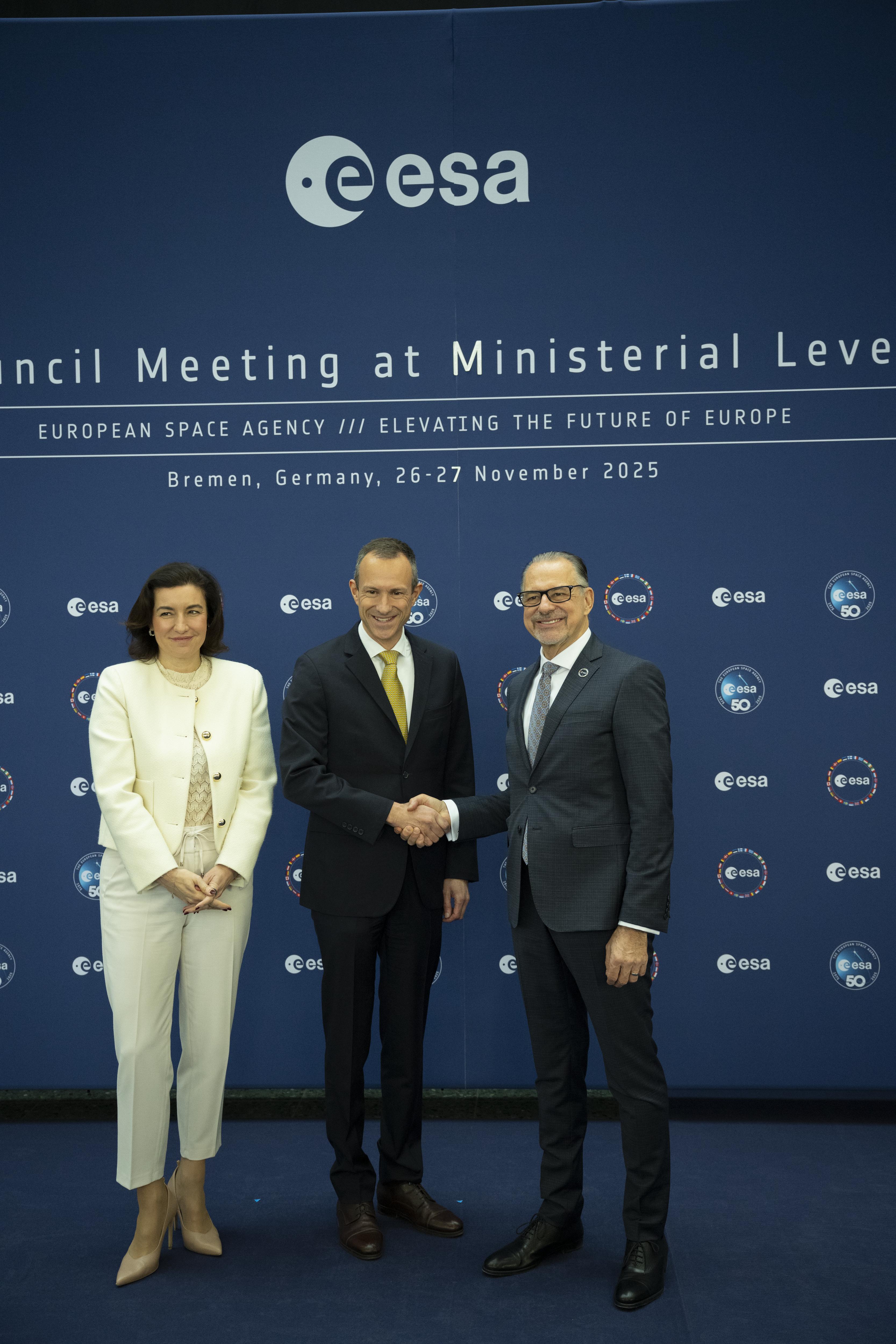 Arrival and greeting of Ministers and photos with ESA astronauts at the start of day 2 of the 2025 Ministerial Council in Bremen, Germany on 26 November 2025.