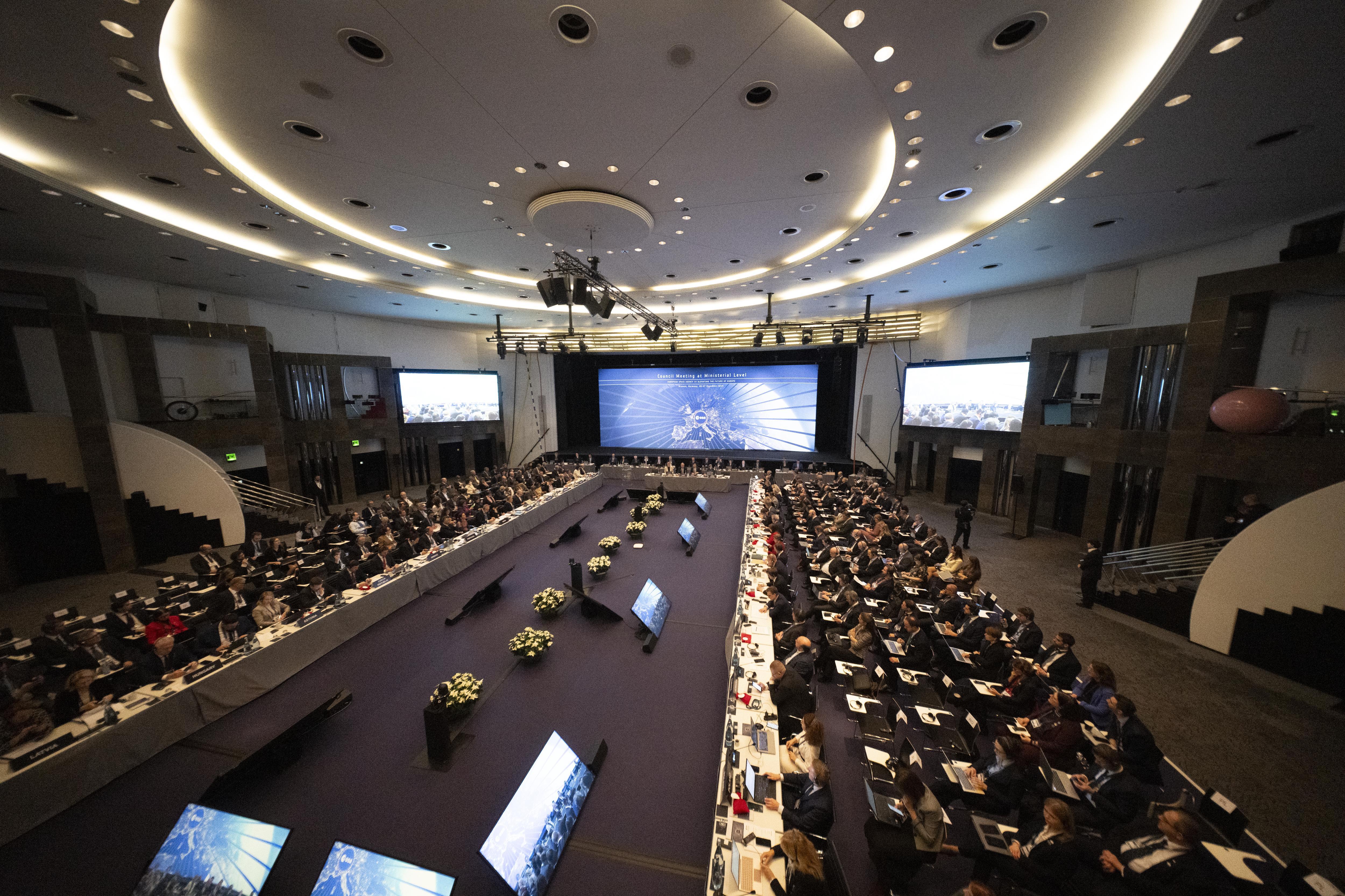 The Opening Session at the 2025 Ministerial Council in Bremen, Germany on 26 November 2025. Dorothee Bär, Federal Minister of Research, Technology and Space, Germany, opened the meeting. Adolfo Urso, Minister of Business and Made in Italy was elected Chair of CM25, the ESA Council at Ministerial level.
