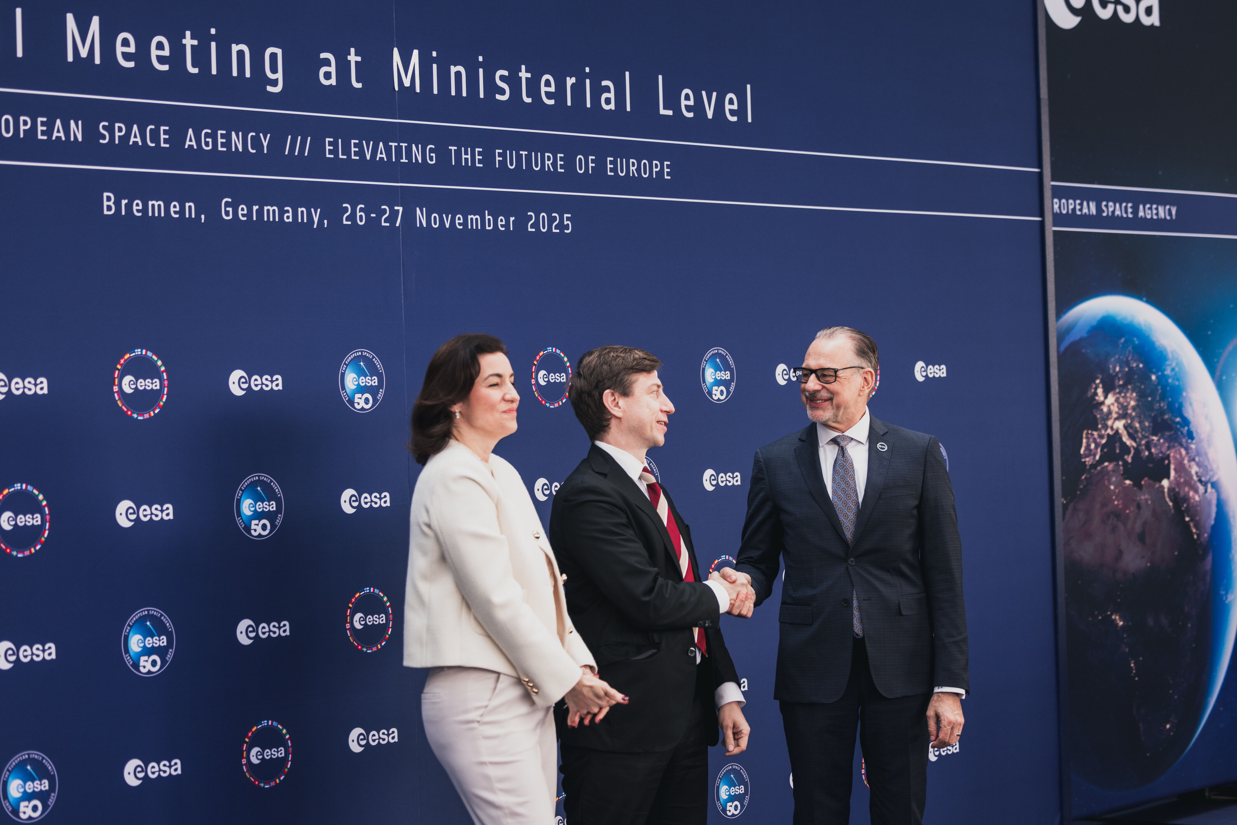 Arrival and greeting of Ministers and photos with ESA astronauts at the start of day 2 of the 2025 Ministerial Council in Bremen, Germany on 26 November 2025.