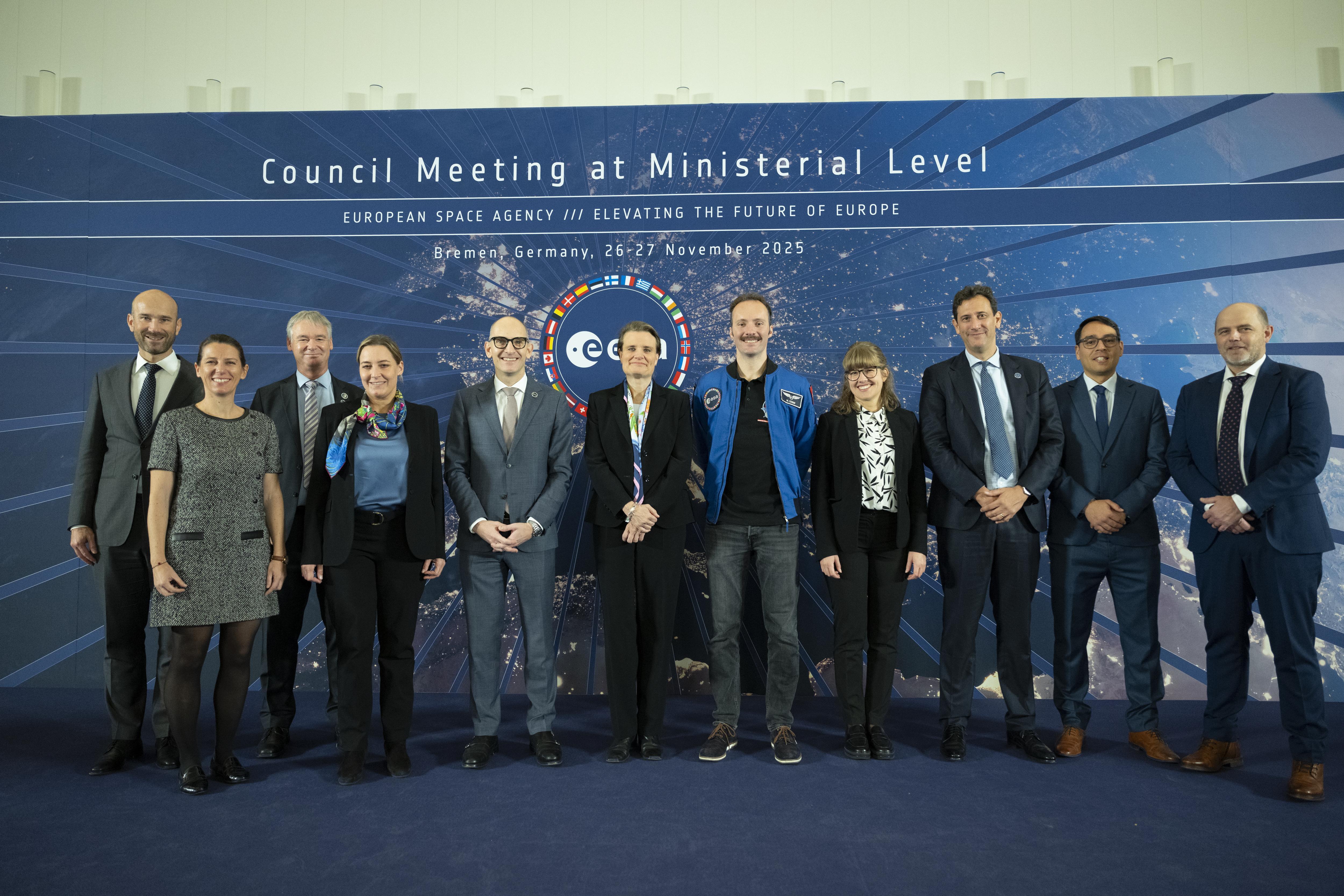 ESA astronaut Marco Sieber with Swiss State Secretary for Education, Research and Innovation Martina Hirayama at the 2025 Ministerial Council in Bremen, Germany on 27 November 2025.