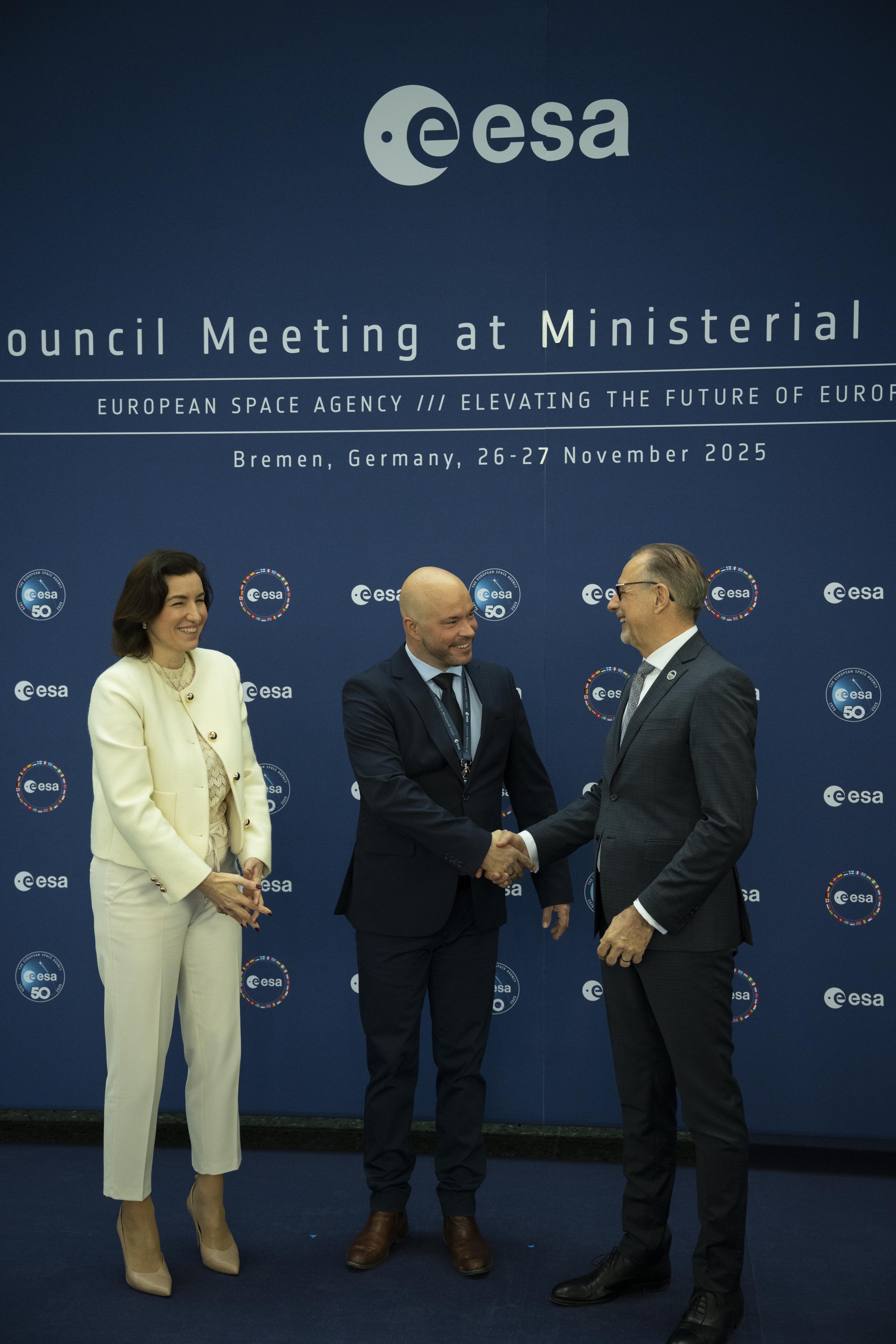 Arrival and greeting of Ministers and photos with ESA astronauts at the start of day 2 of the 2025 Ministerial Council in Bremen, Germany on 26 November 2025.
