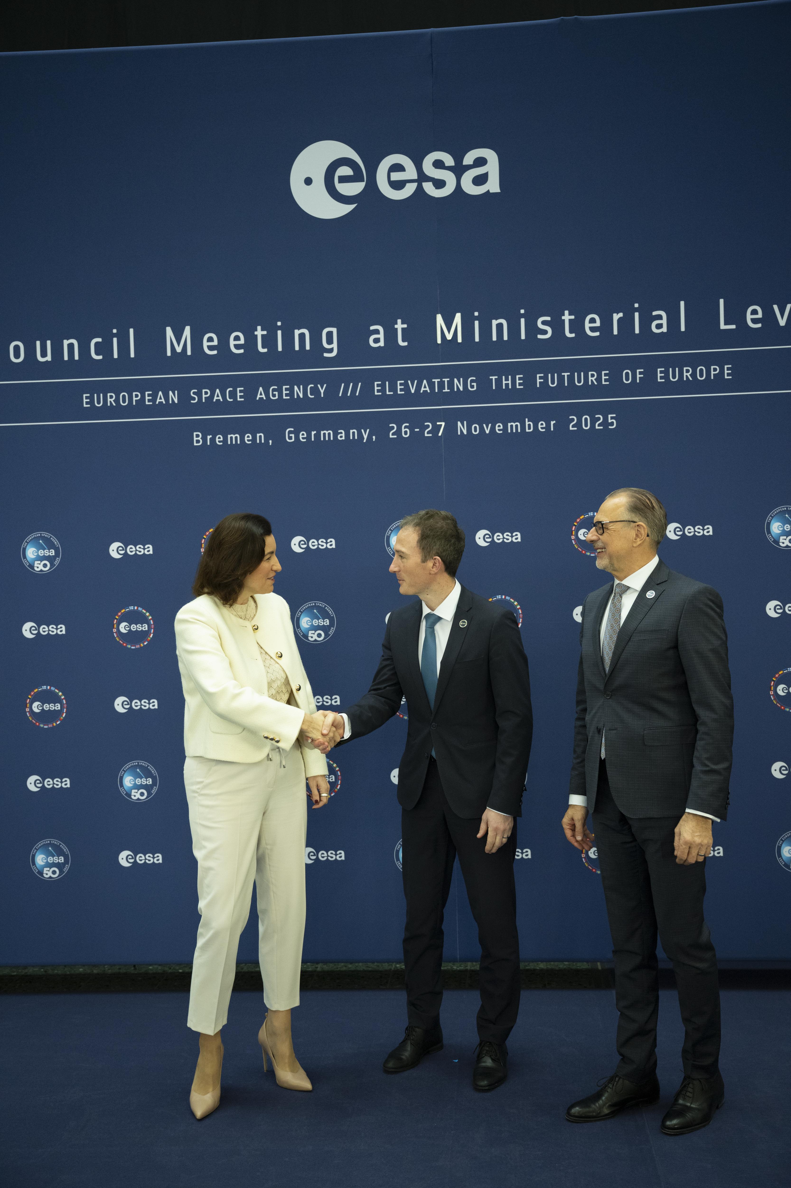 Arrival and greeting of Ministers and photos with ESA astronauts at the start of day 2 of the 2025 Ministerial Council in Bremen, Germany on 26 November 2025.