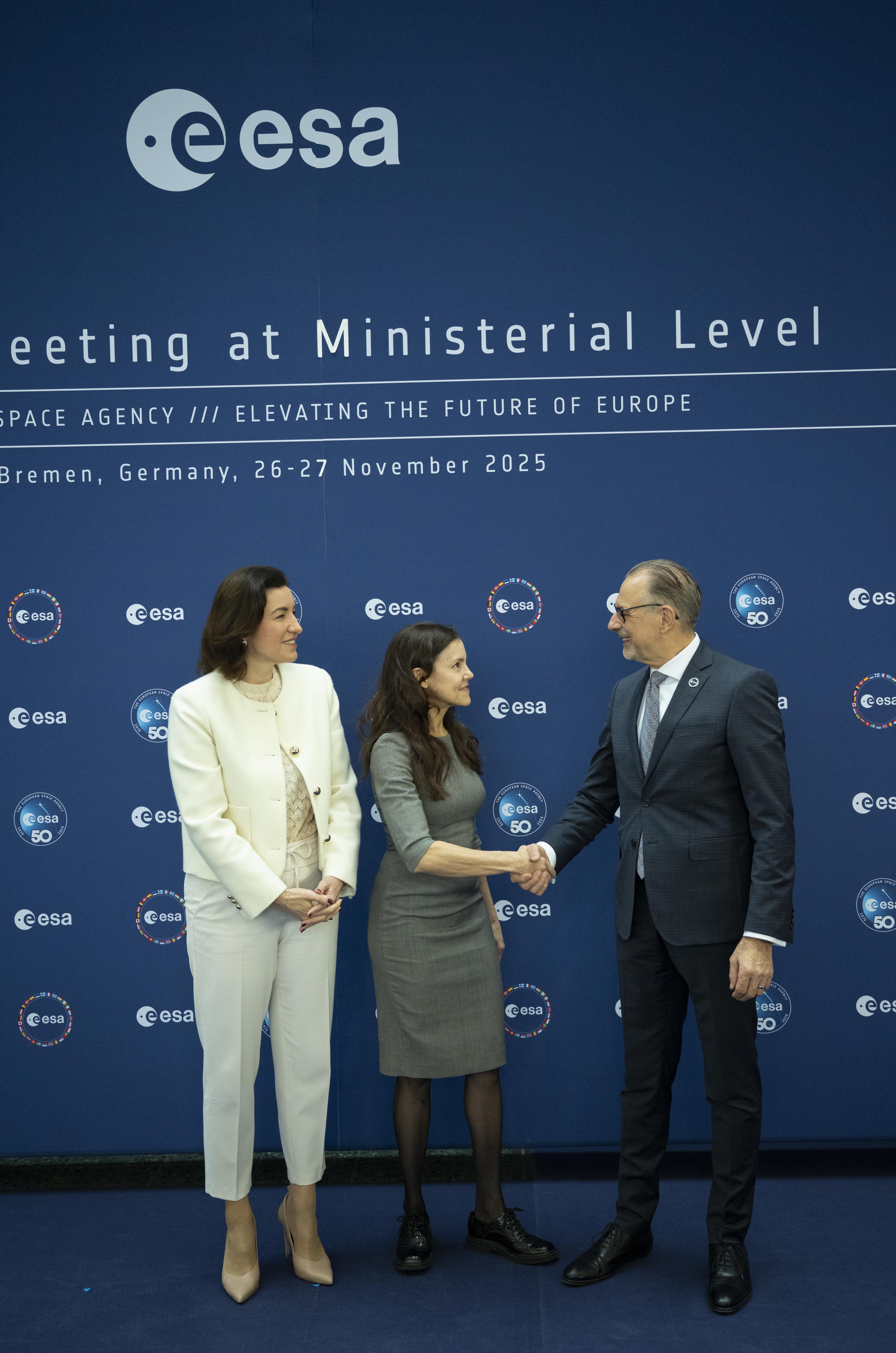 Arrival and greeting of Ministers and photos with ESA astronauts at the start of day 2 of the 2025 Ministerial Council in Bremen, Germany on 26 November 2025.