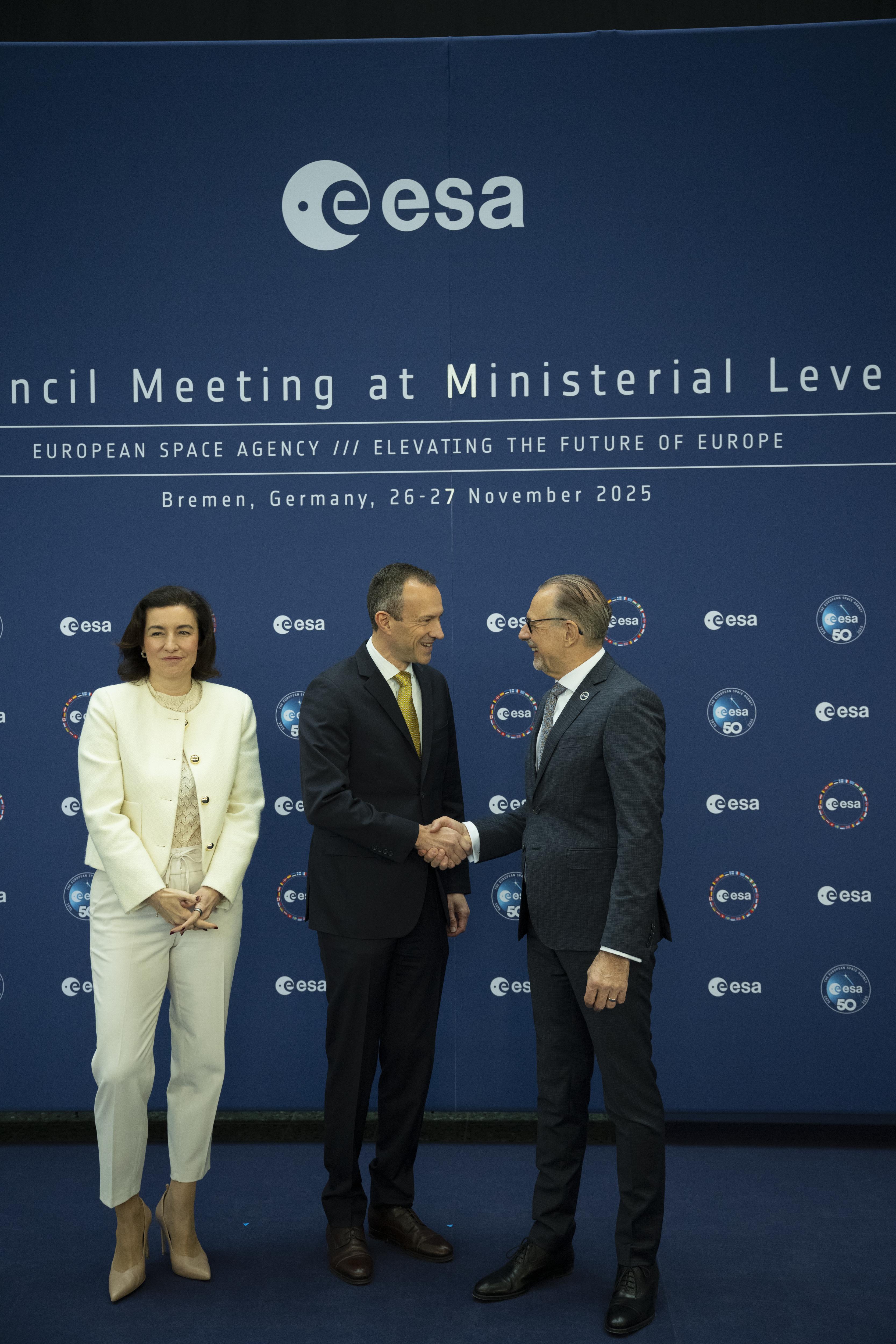Arrival and greeting of Ministers and photos with ESA astronauts at the start of day 2 of the 2025 Ministerial Council in Bremen, Germany on 26 November 2025.