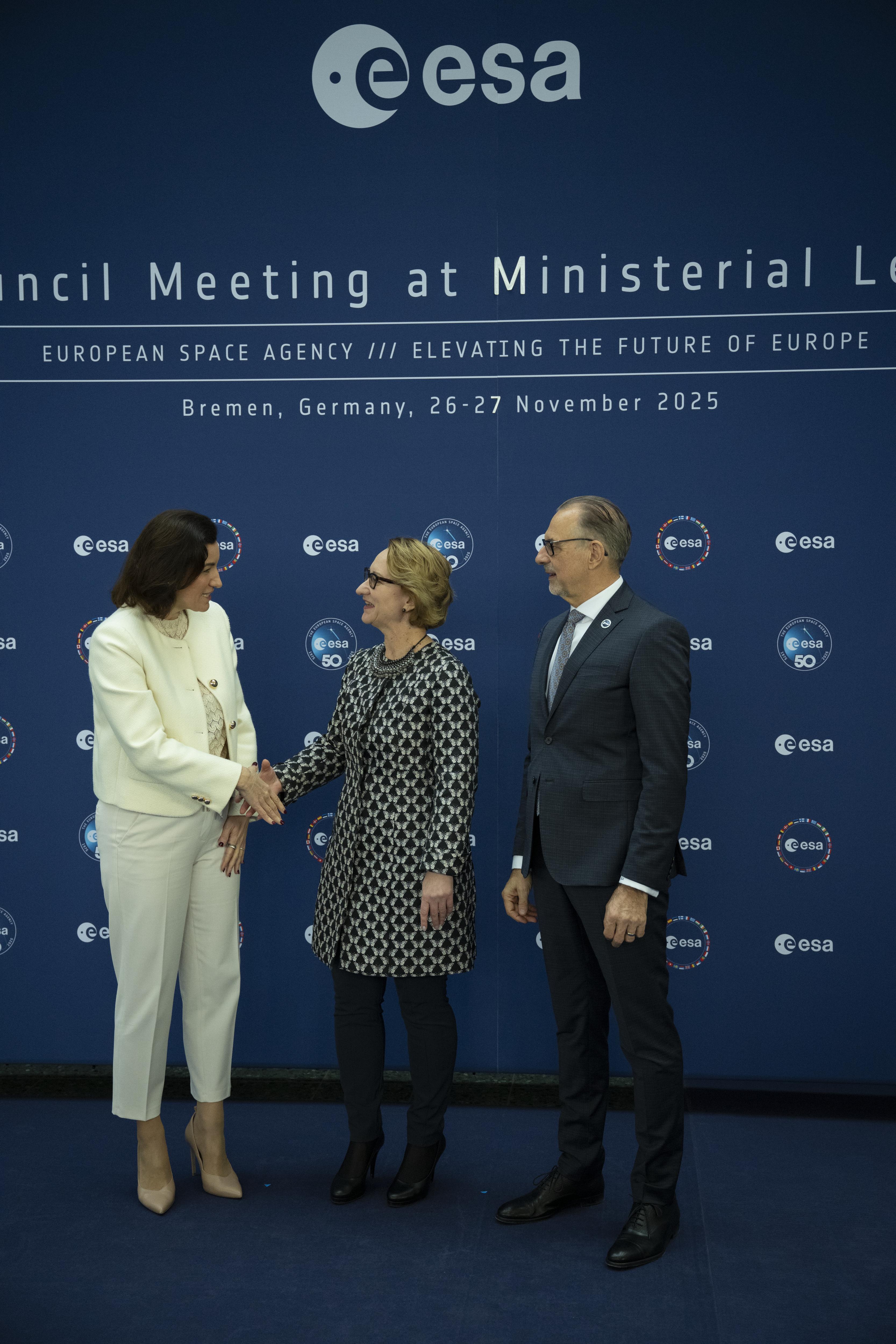 Arrival and greeting of Ministers and photos with ESA astronauts at the start of day 2 of the 2025 Ministerial Council in Bremen, Germany on 26 November 2025.