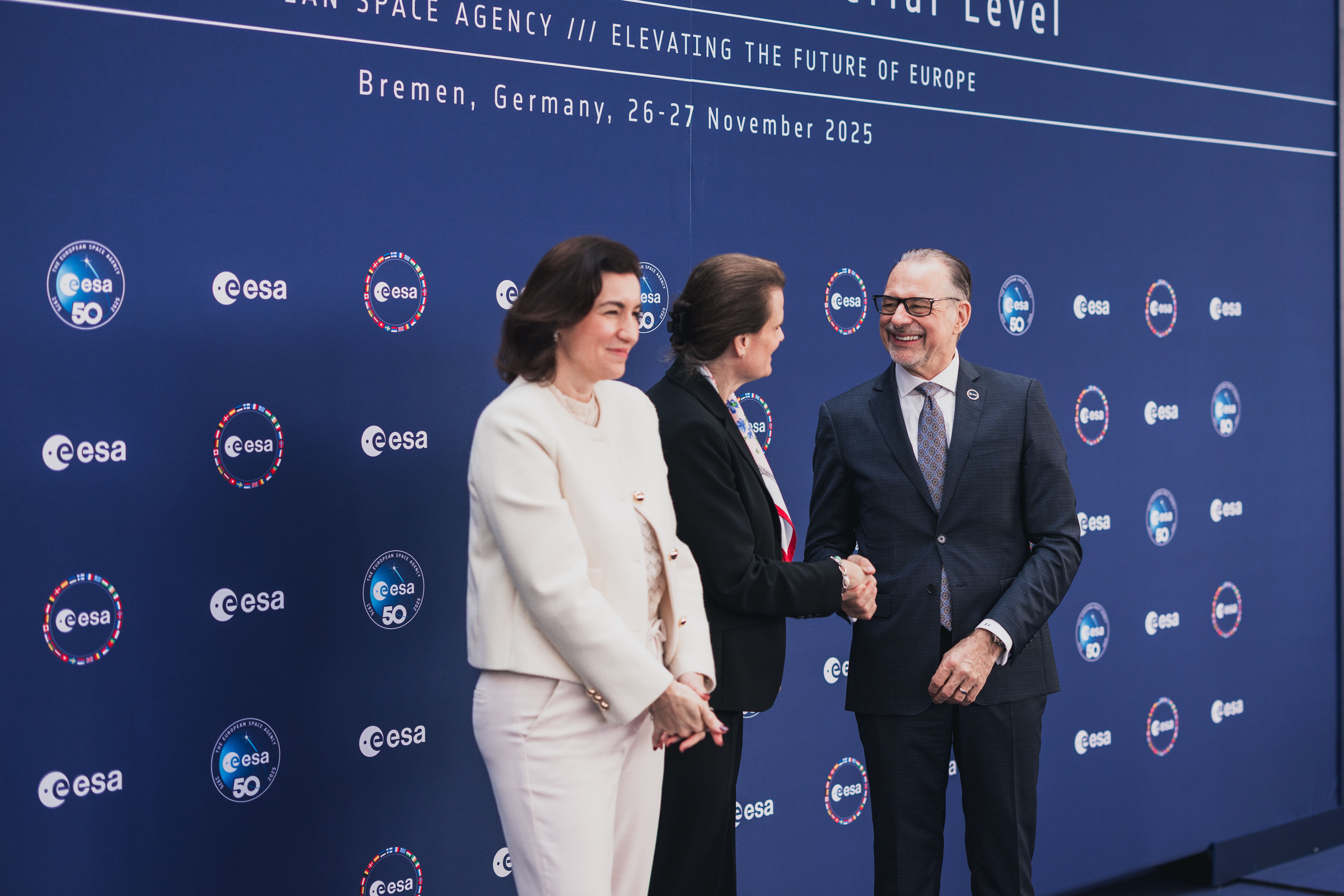 Arrival and greeting of Ministers and photos with ESA astronauts at the start of day 2 of the 2025 Ministerial Council in Bremen, Germany on 26 November 2025.