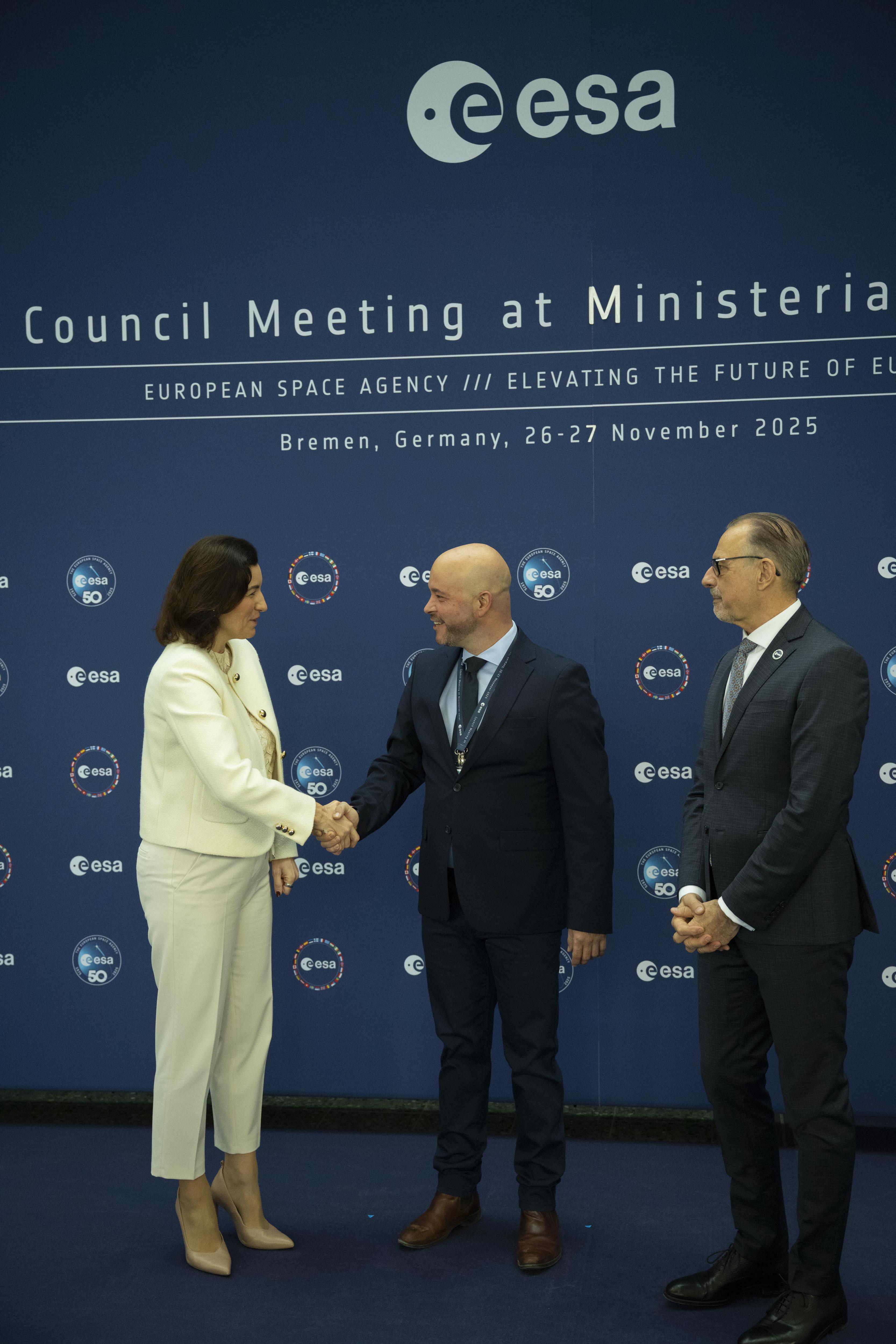 Arrival and greeting of Ministers and photos with ESA astronauts at the start of day 2 of the 2025 Ministerial Council in Bremen, Germany on 26 November 2025.