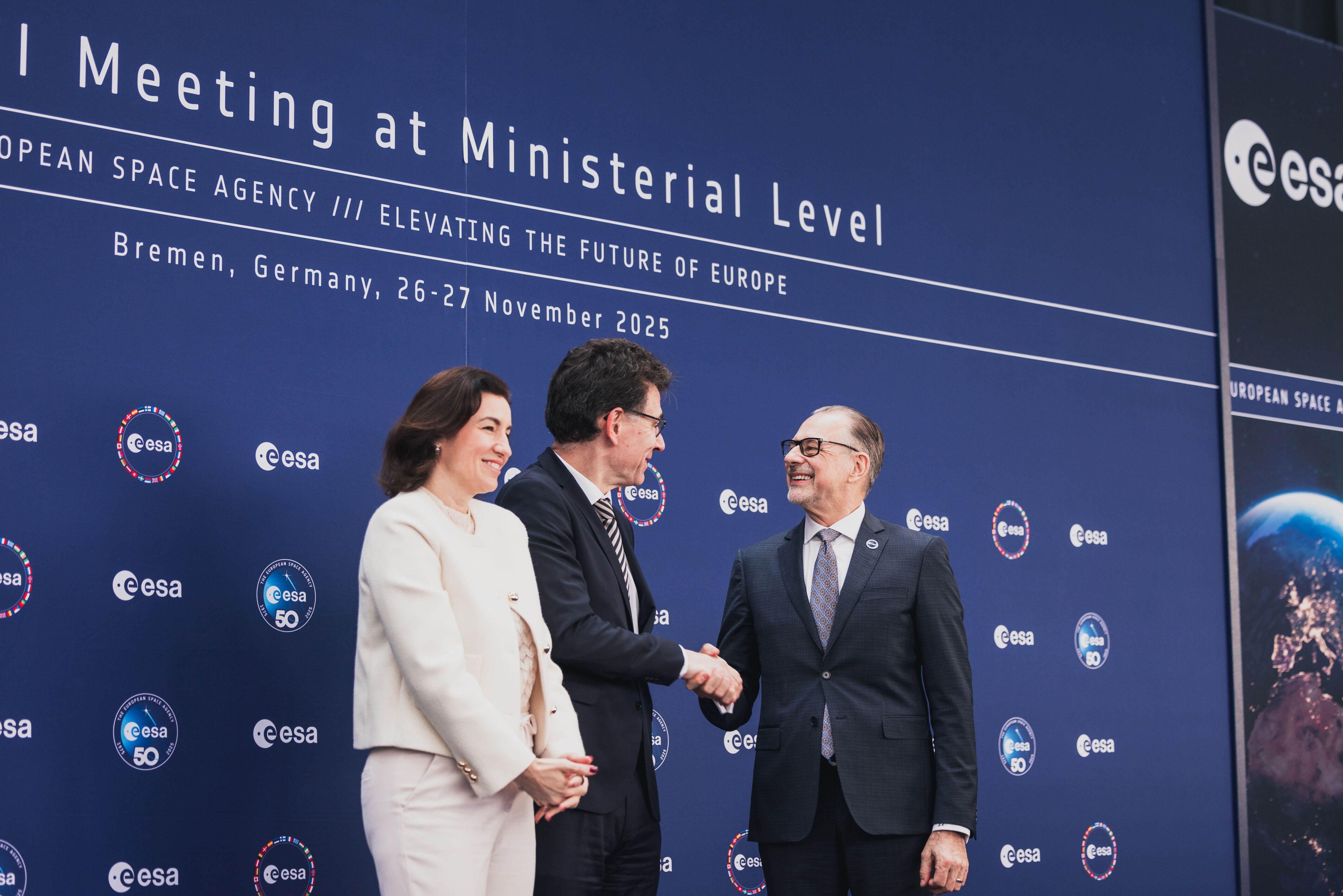 Arrival and greeting of Ministers and photos with ESA astronauts at the start of day 2 of the 2025 Ministerial Council in Bremen, Germany on 26 November 2025.