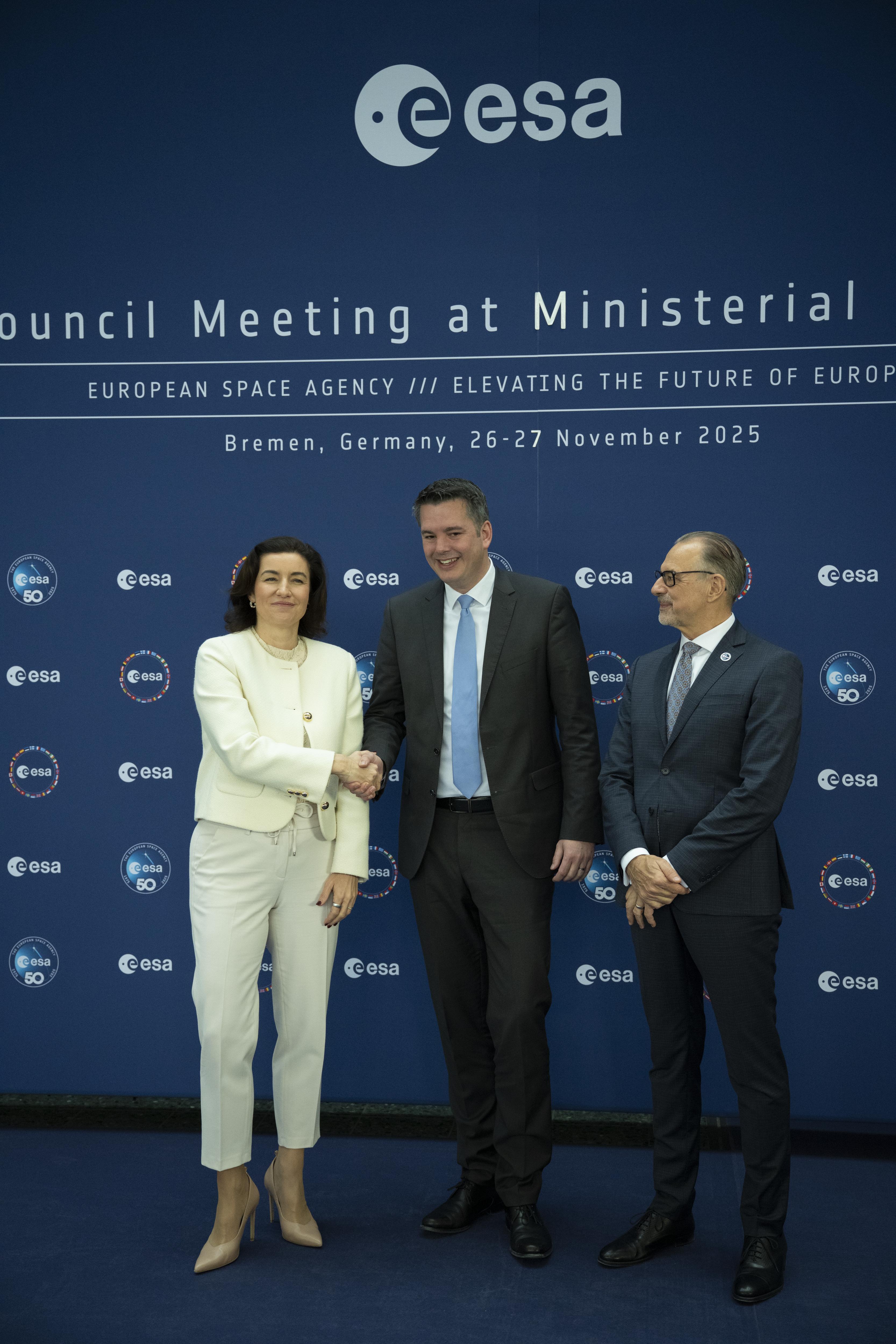 Arrival and greeting of Ministers and photos with ESA astronauts at the start of day 2 of the 2025 Ministerial Council in Bremen, Germany on 26 November 2025.