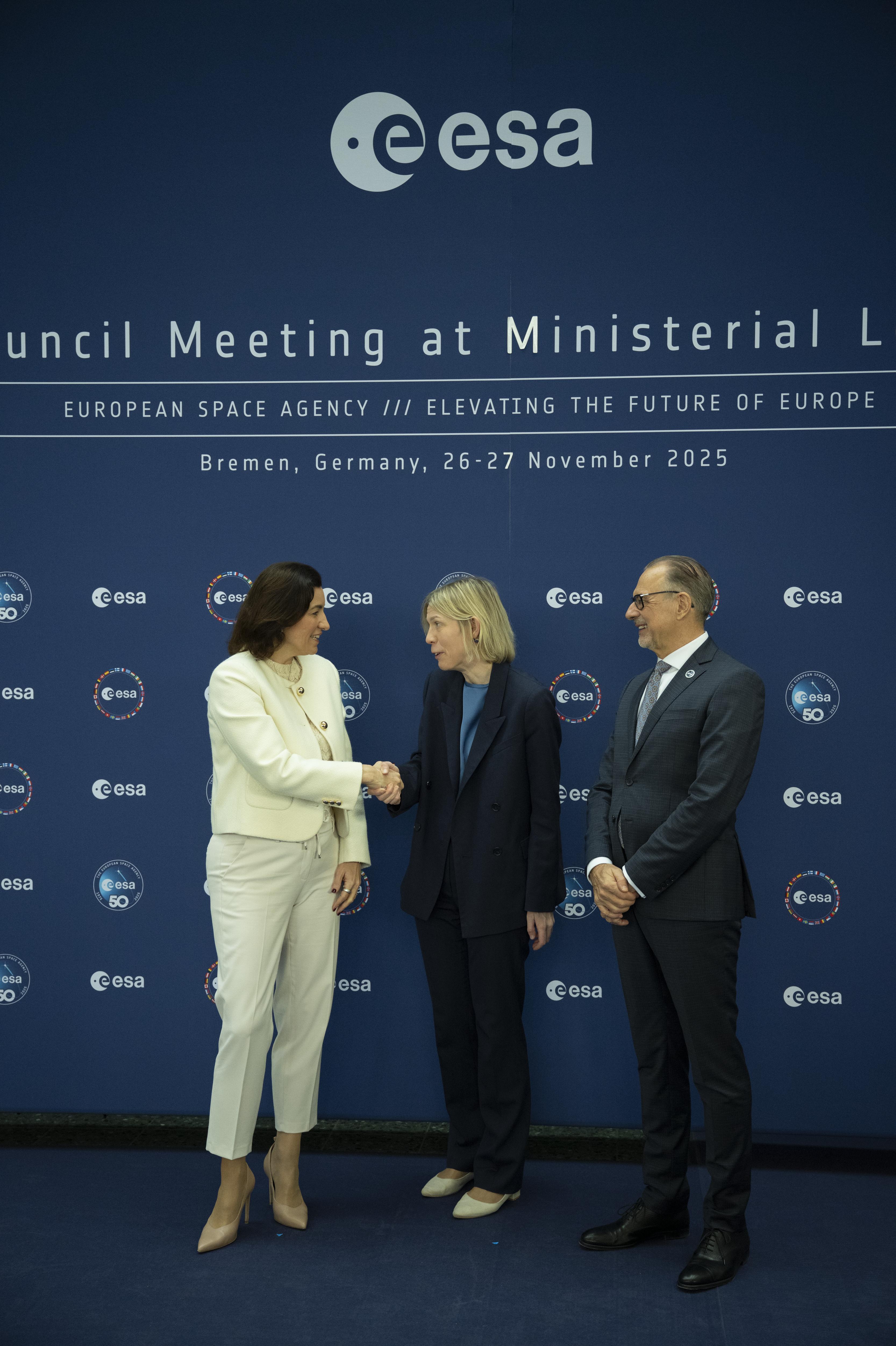 Arrival and greeting of Ministers and photos with ESA astronauts at the start of day 2 of the 2025 Ministerial Council in Bremen, Germany on 26 November 2025.