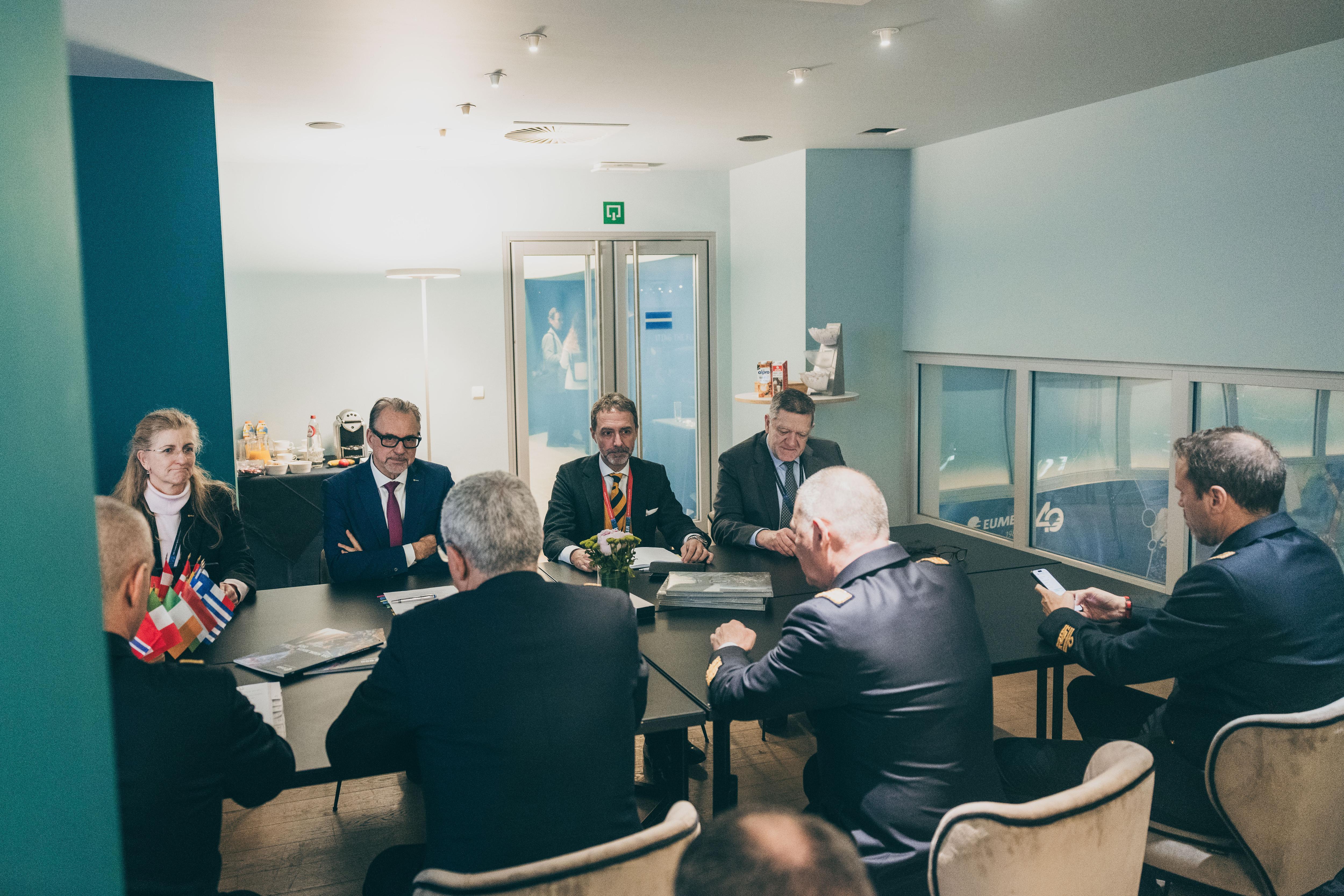 ESA Director General and Simonetta Cheli, ESA Director or Earth Observation (D/EOP) in talks with General Conserva Joint Chief of Staff Italian Air Force on the second day of the 18th European Space Conference in Brussels, Belgium on 28 January 2026.