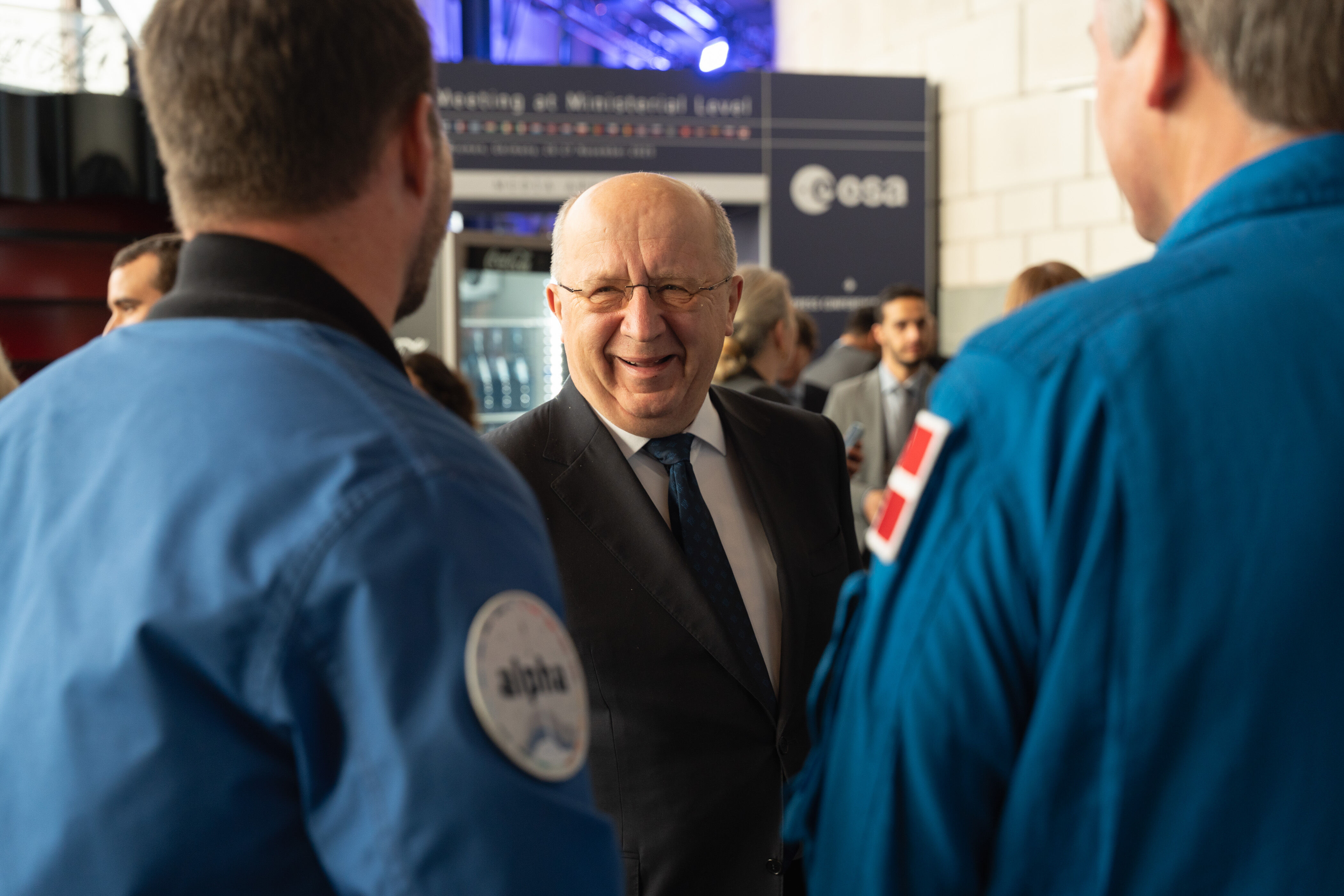 Ministers and delegatees in the foyer during the meet and greet with ESA astronauts at the 2025 Ministerial Council in Bremen, Germany on 26 November 2025.