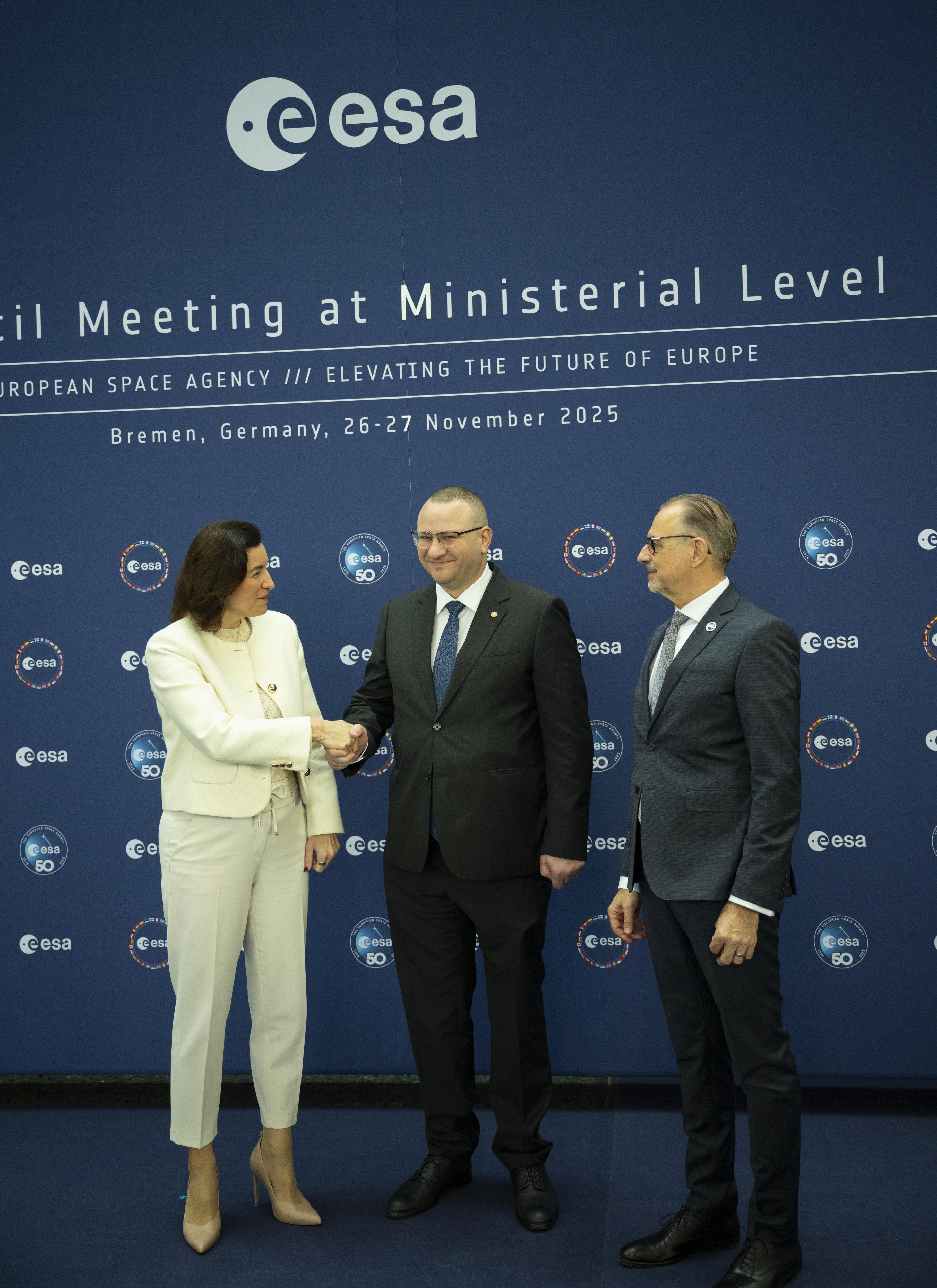 Arrival and greeting of Ministers and photos with ESA astronauts at the start of day 2 of the 2025 Ministerial Council in Bremen, Germany on 26 November 2025.
