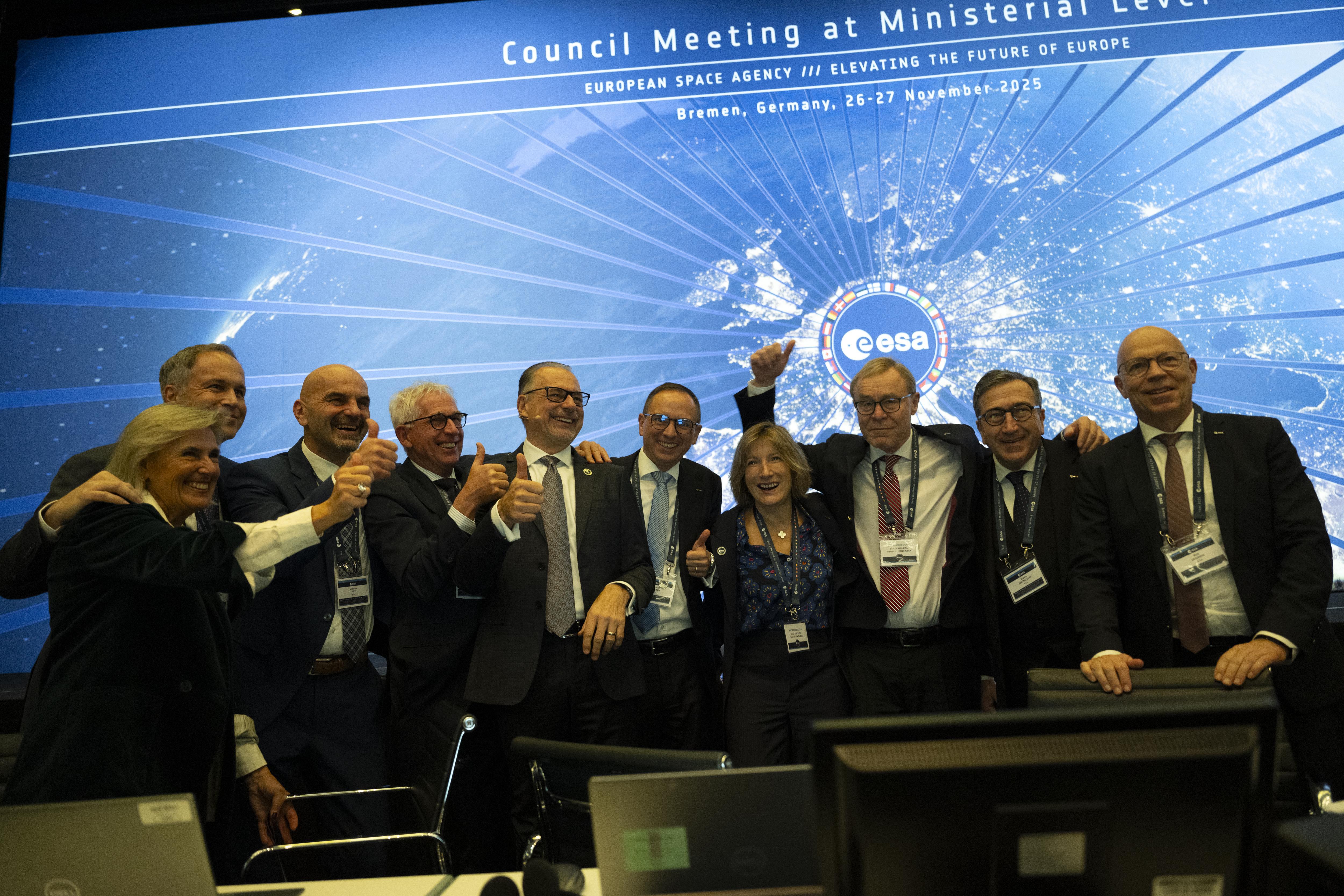 The Opening Session at the 2025 Ministerial Council in Bremen, Germany on 26 November 2025. Dorothee Bär, Federal Minister of Research, Technology and Space, Germany, opened the meeting. Adolfo Urso, Minister of Business and Made in Italy was elected Chair of CM25, the ESA Council at Ministerial level.