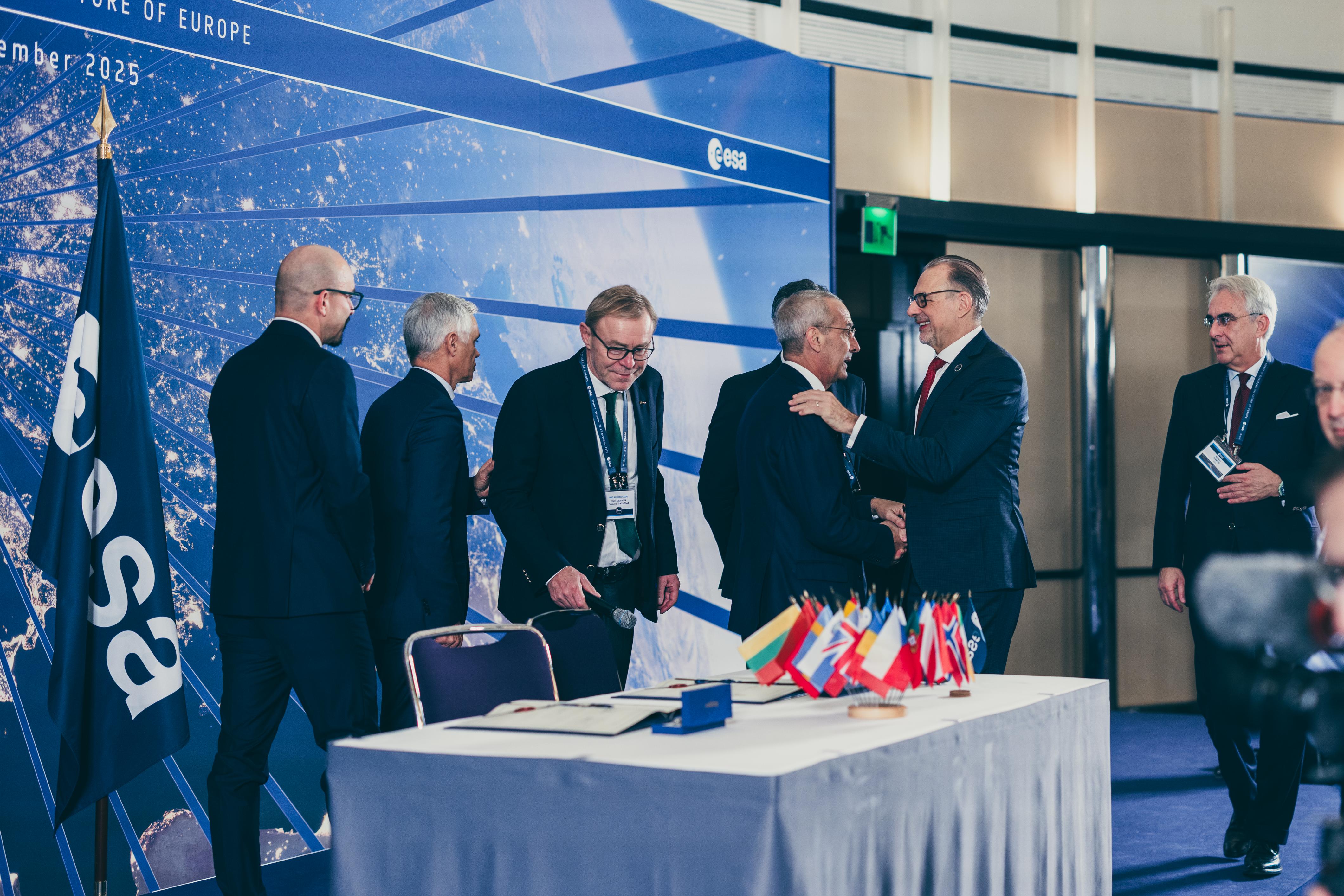 Ricardo Conde, President of the Portuguese Space Agency and ESA Director General Josef Aschbacher signed a cooperation agreement between for the development of a space hub on the Santa Maria island of the Azores, including the construction of facilities for a Space Rider landing site on 27 November 2025. The formalisation of this agreement was witnessed by the Portuguese Minister of Education, Science and Innovation, Fernando Alexandre, and the Portuguese Secretary of State for Science and Innovation, Helena Canhão, and the Italian Minister for Enterprises, Adolfo Urso, ESA Director General Josef Aschbacher commented: "Today’s signature strengthens Portugal’s role as a strategic Atlantic gateway for innovation and growth and highlights their commitment to the space sector. This agreement is key to the next chapter of Space Rider, Europe’s first fully reusable space vehicle building on the success of the IXV mission, an experimental space shuttle developed in Italy. Space Rider will enable Europe to return payloads from LEO competitively, with first launch planned for 2028. Santa Maria will be essential to this capability. Beyond Space Rider, this partnership lays the foundations for a multipurpose space hub serving Portuguese, European, and global actors, driving innovation and economic development in the Azores."