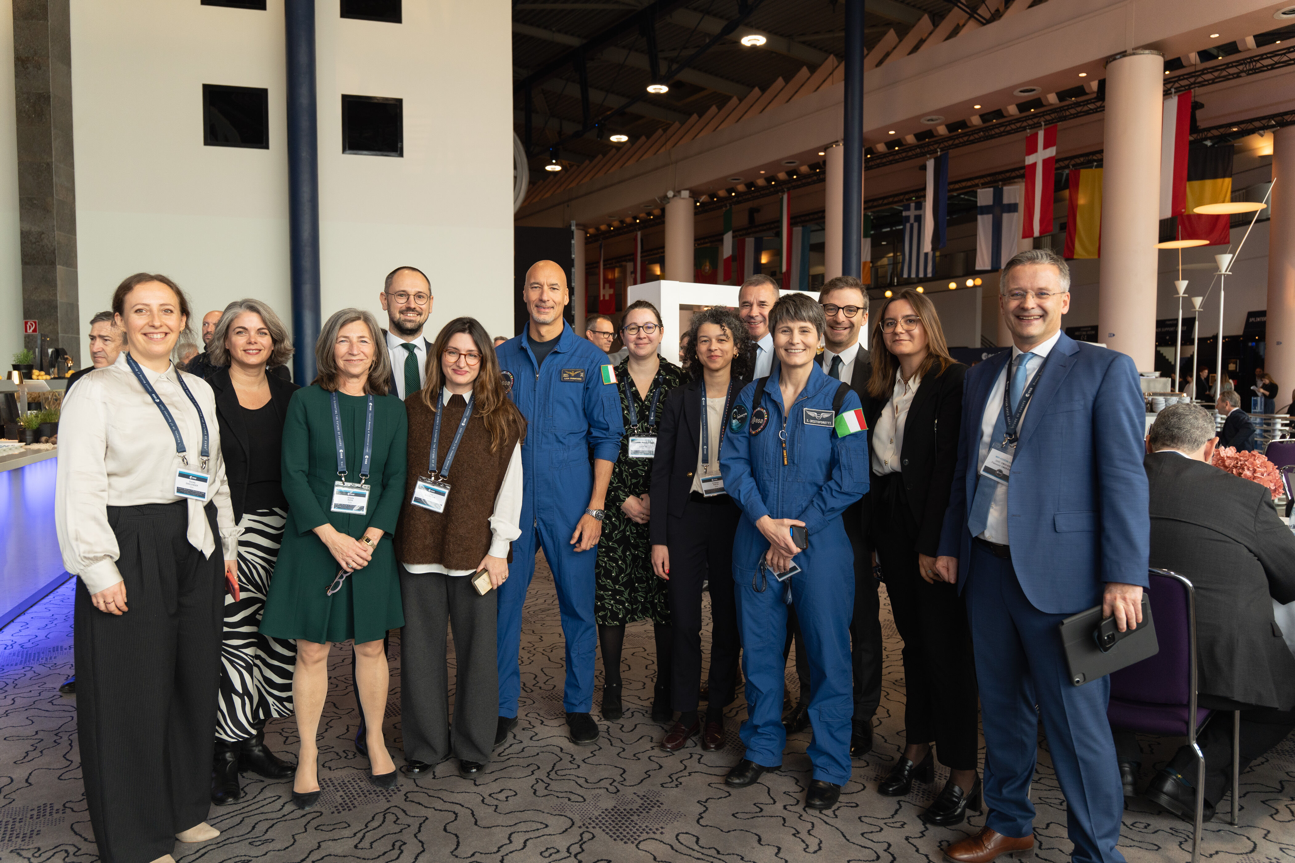 Ministers and delegatees in the foyer during the meet and greet with ESA astronauts at the 2025 Ministerial Council in Bremen, Germany on 26 November 2025.