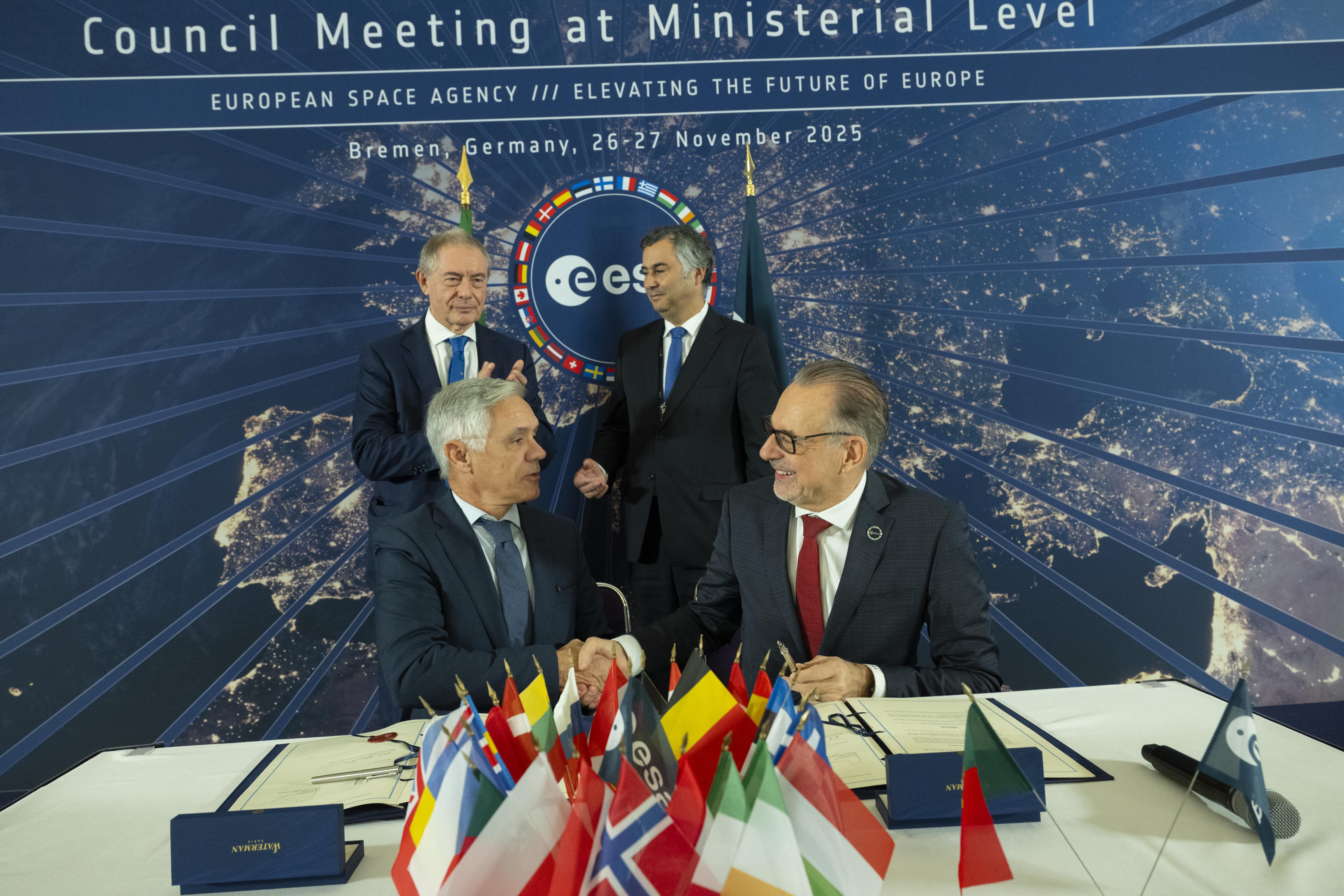 Ricardo Conde, President of the Portuguese Space Agency and ESA Director General Josef Aschbacher signed a cooperation agreement between for the development of a space hub on the Santa Maria island of the Azores, including the construction of facilities for a Space Rider landing site on 27 November 2025. The formalisation of this agreement was witnessed by the Portuguese Minister of Education, Science and Innovation, Fernando Alexandre, and the Portuguese Secretary of State for Science and Innovation, Helena Canhão, and the Italian Minister for Enterprises, Adolfo Urso, ESA Director General Josef Aschbacher commented: "Today’s signature strengthens Portugal’s role as a strategic Atlantic gateway for innovation and growth and highlights their commitment to the space sector. This agreement is key to the next chapter of Space Rider, Europe’s first fully reusable space vehicle building on the success of the IXV mission, an experimental space shuttle developed in Italy. Space Rider will enable Europe to return payloads from LEO competitively, with first launch planned for 2028. Santa Maria will be essential to this capability. Beyond Space Rider, this partnership lays the foundations for a multipurpose space hub serving Portuguese, European, and global actors, driving innovation and economic development in the Azores."