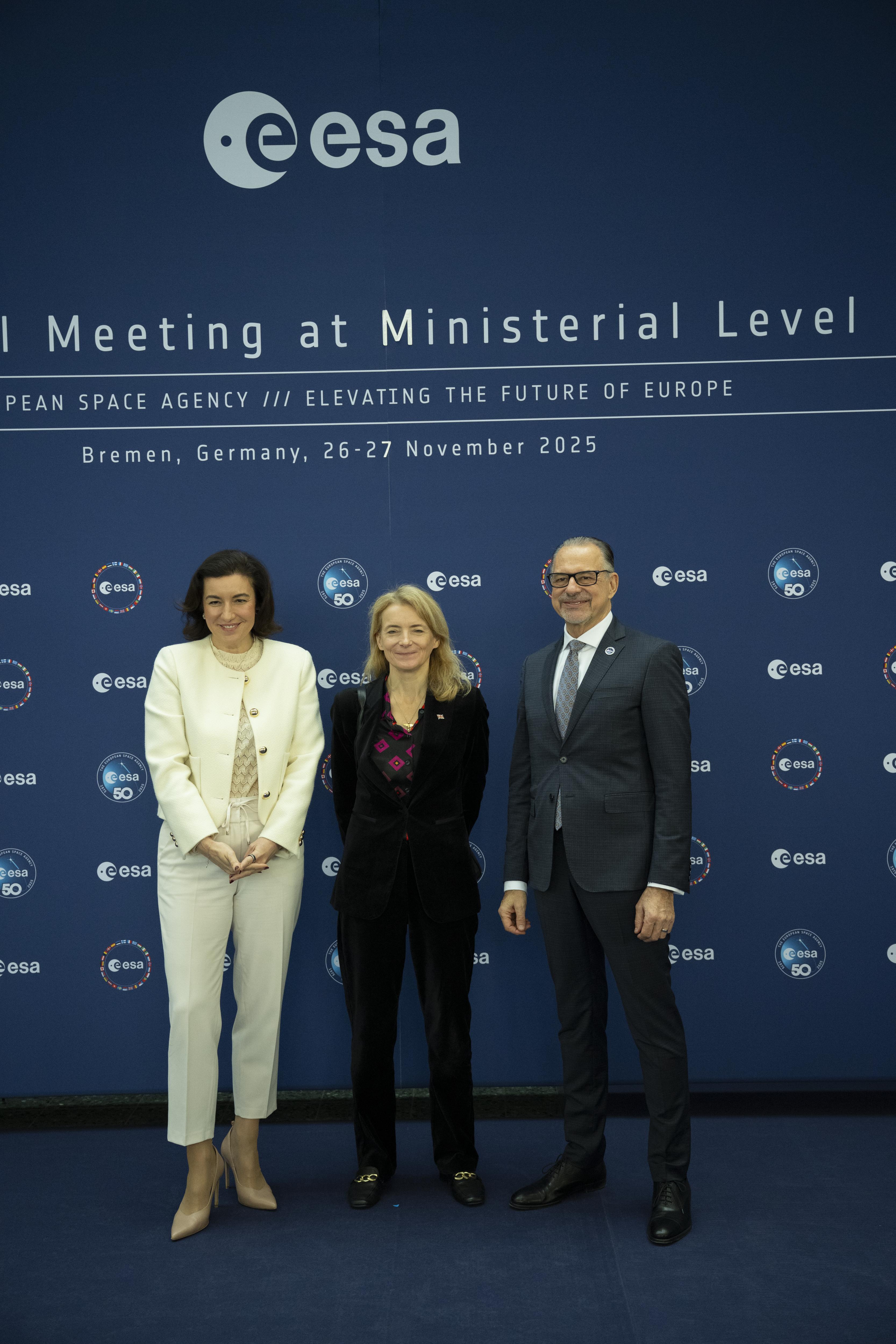 Arrival and greeting of Ministers and photos with ESA astronauts at the start of day 2 of the 2025 Ministerial Council in Bremen, Germany on 26 November 2025.