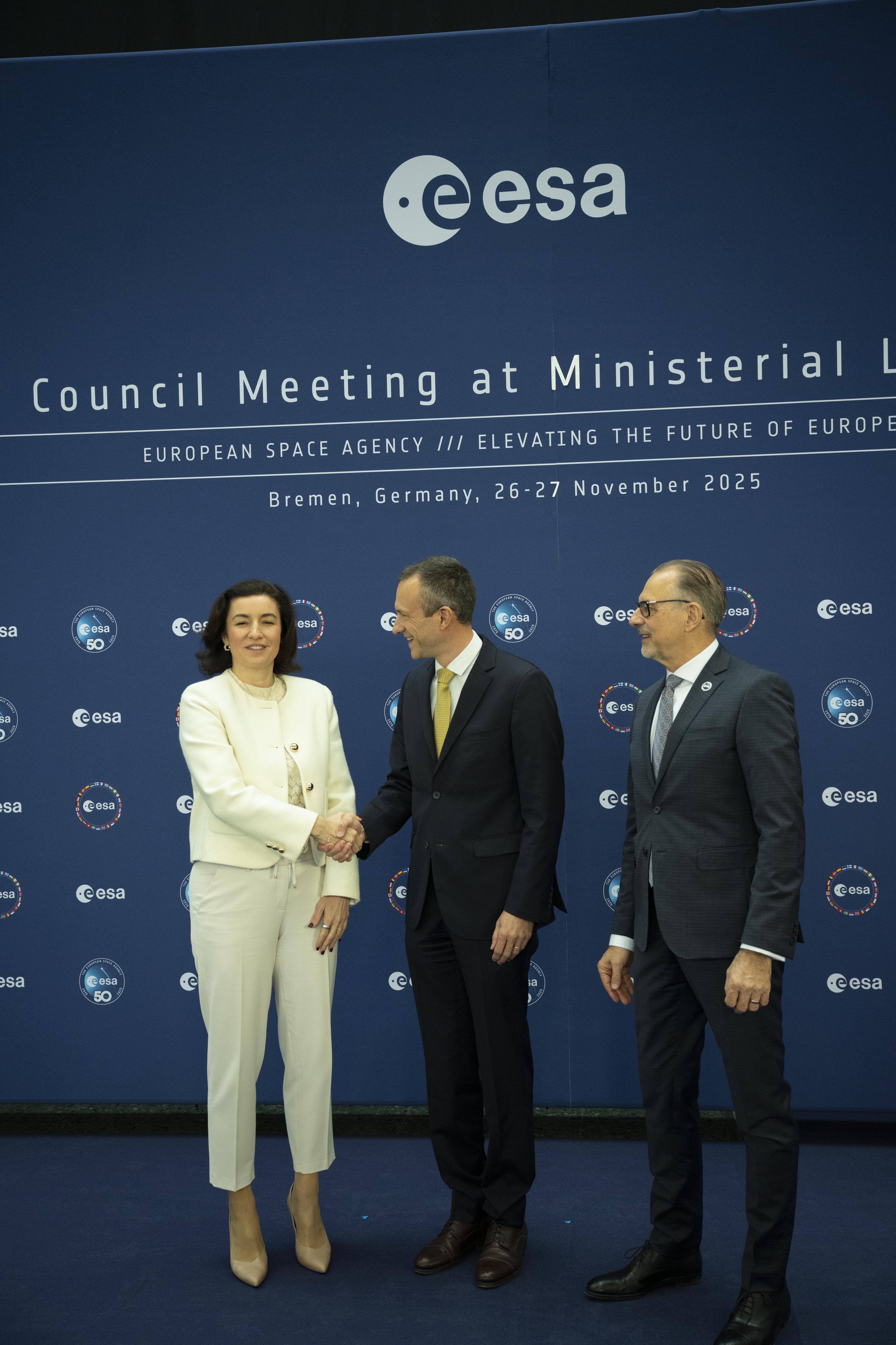 Arrival and greeting of Ministers and photos with ESA astronauts at the start of day 2 of the 2025 Ministerial Council in Bremen, Germany on 26 November 2025.