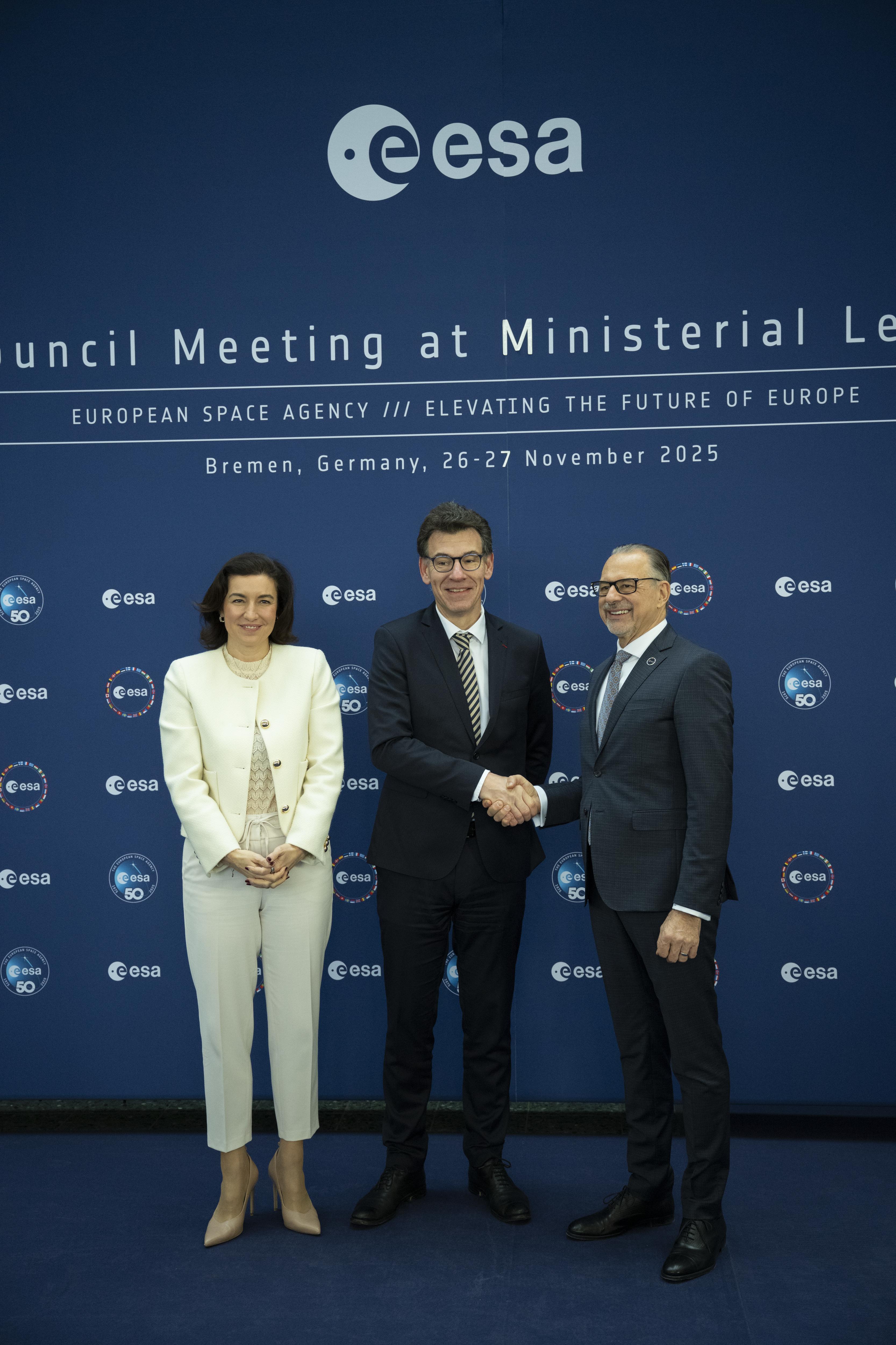 Arrival and greeting of Ministers and photos with ESA astronauts at the start of day 2 of the 2025 Ministerial Council in Bremen, Germany on 26 November 2025.