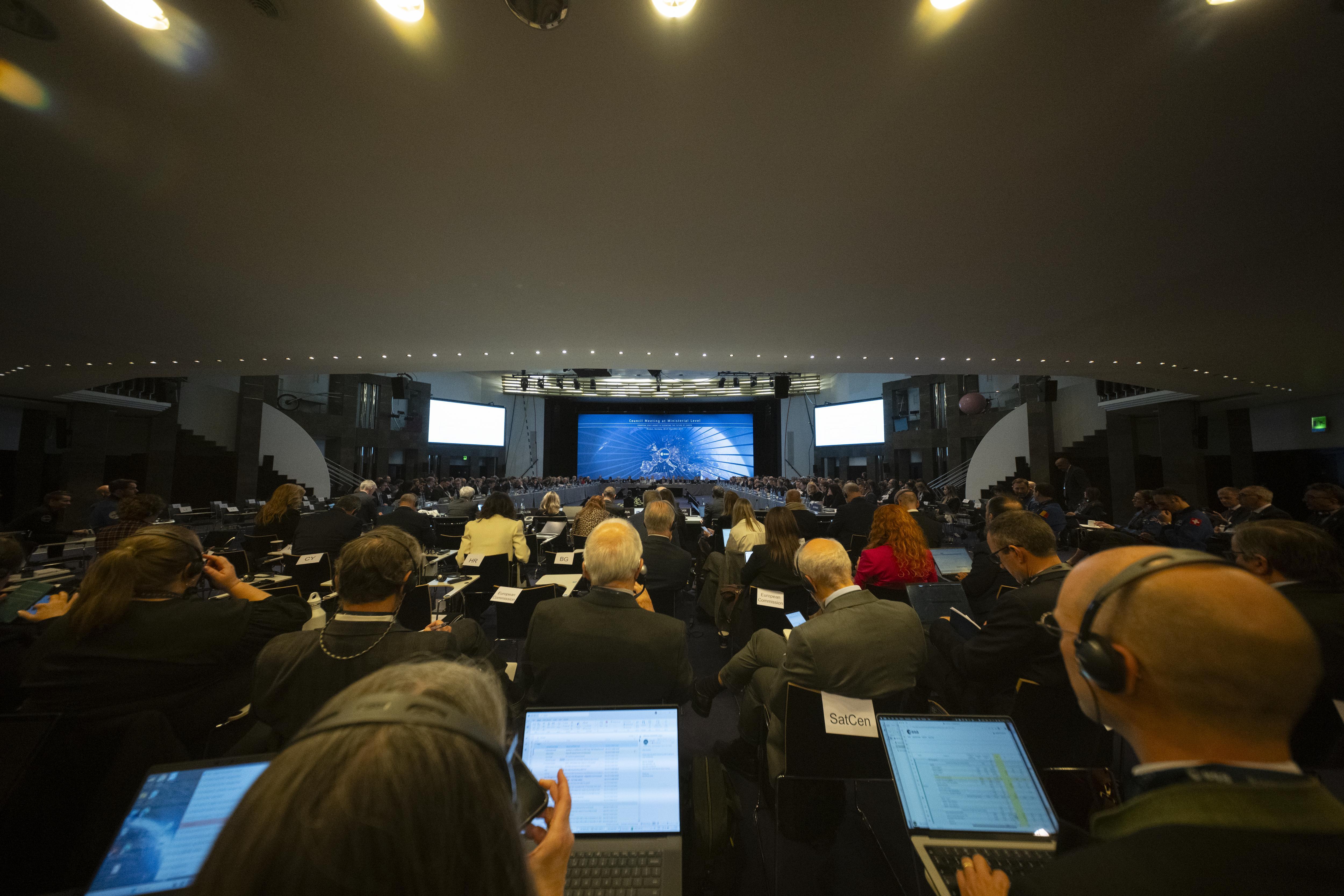 Wide angle shots of the conference room at the 2025 Ministerial Council in Bremen, Germany on 27 November 2025.