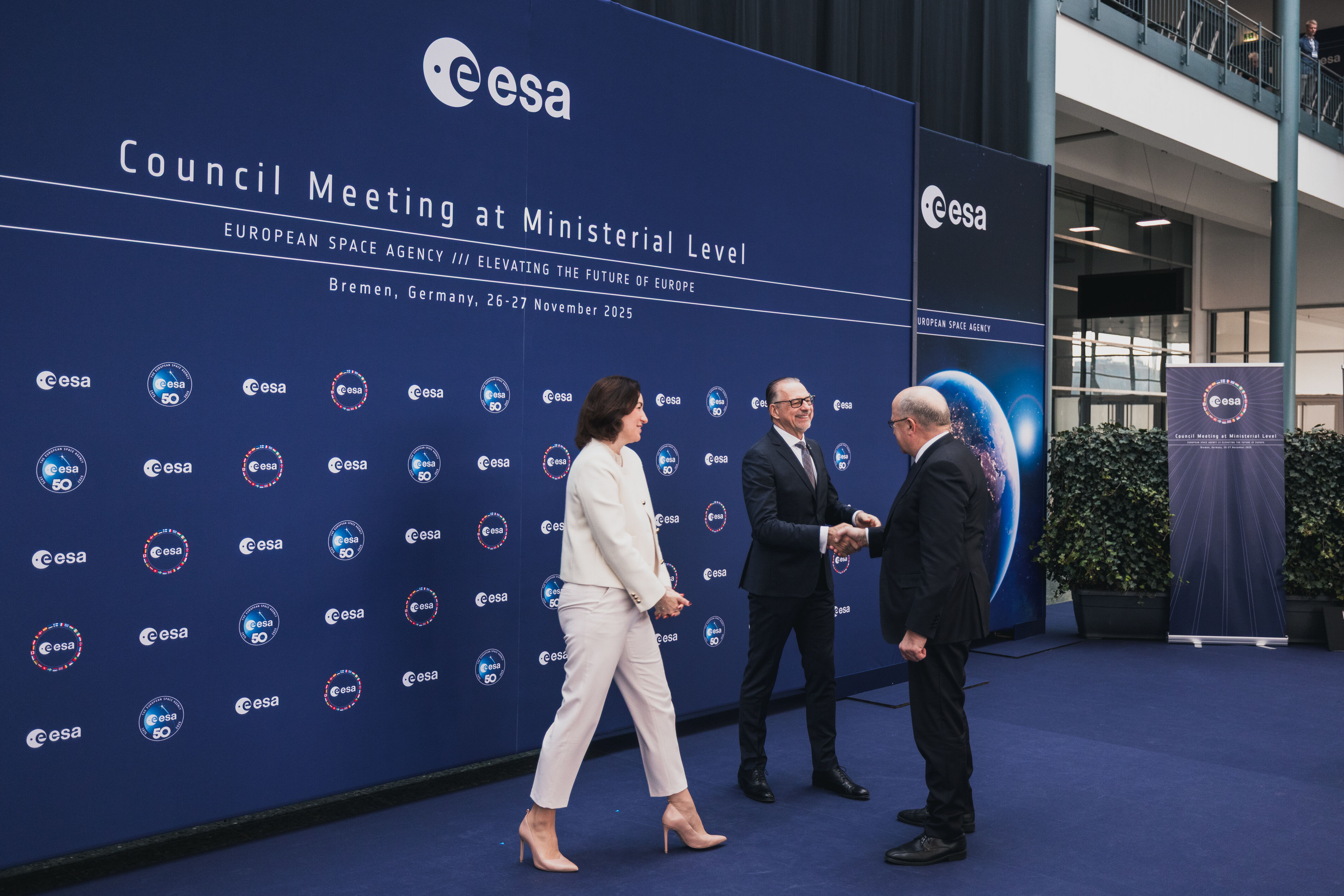 Arrival and greeting of Ministers and photos with ESA astronauts at the start of day 2 of the 2025 Ministerial Council in Bremen, Germany on 26 November 2025.